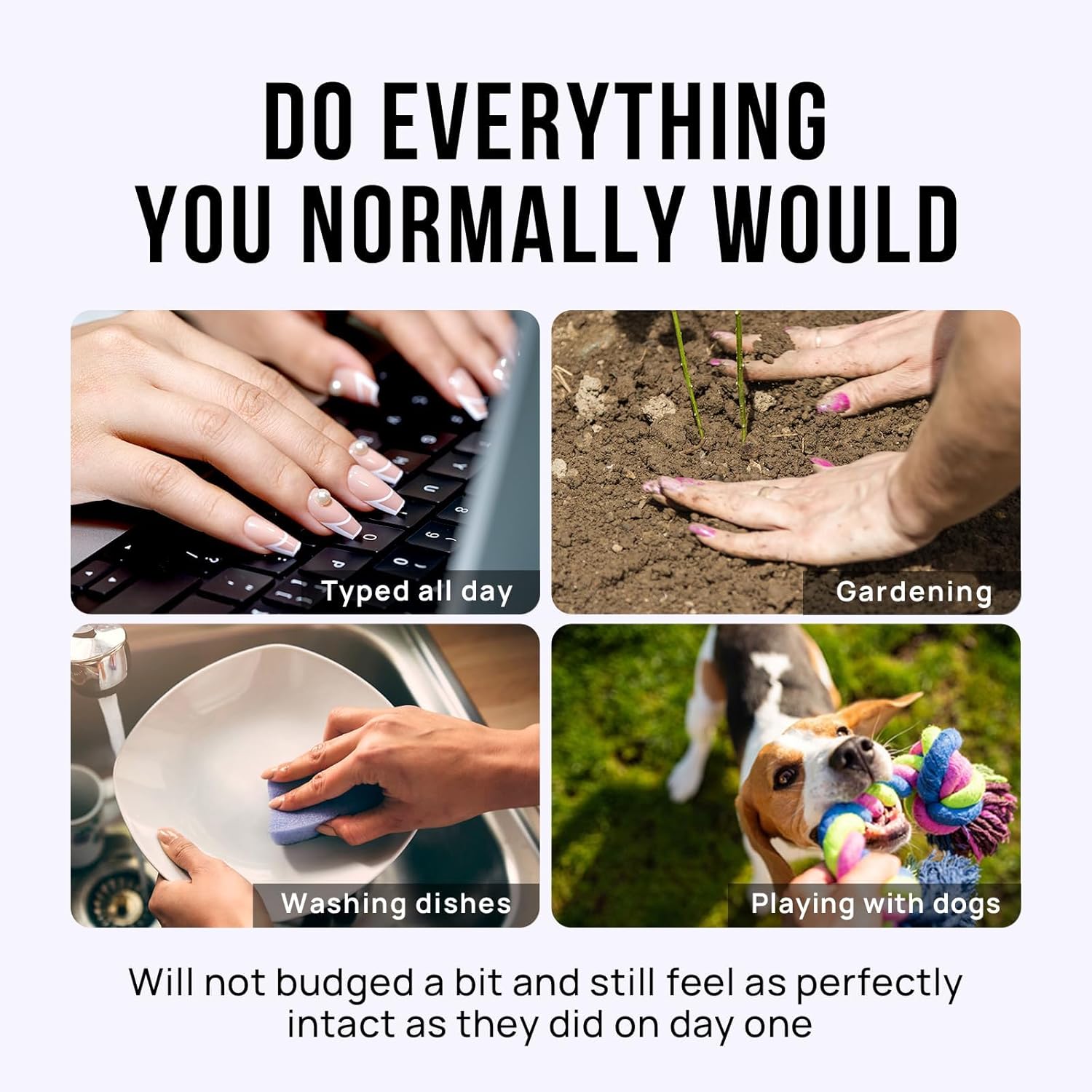 - Wear Them Weeks Straight or A Few Days - You Decide!If you want to get more than 14 days long lasting, we recommend using nail glue and adhesive tabs together. If you want to change the design weekly, only using glue is best choice. Adhesive tab is best for a date night or a little event