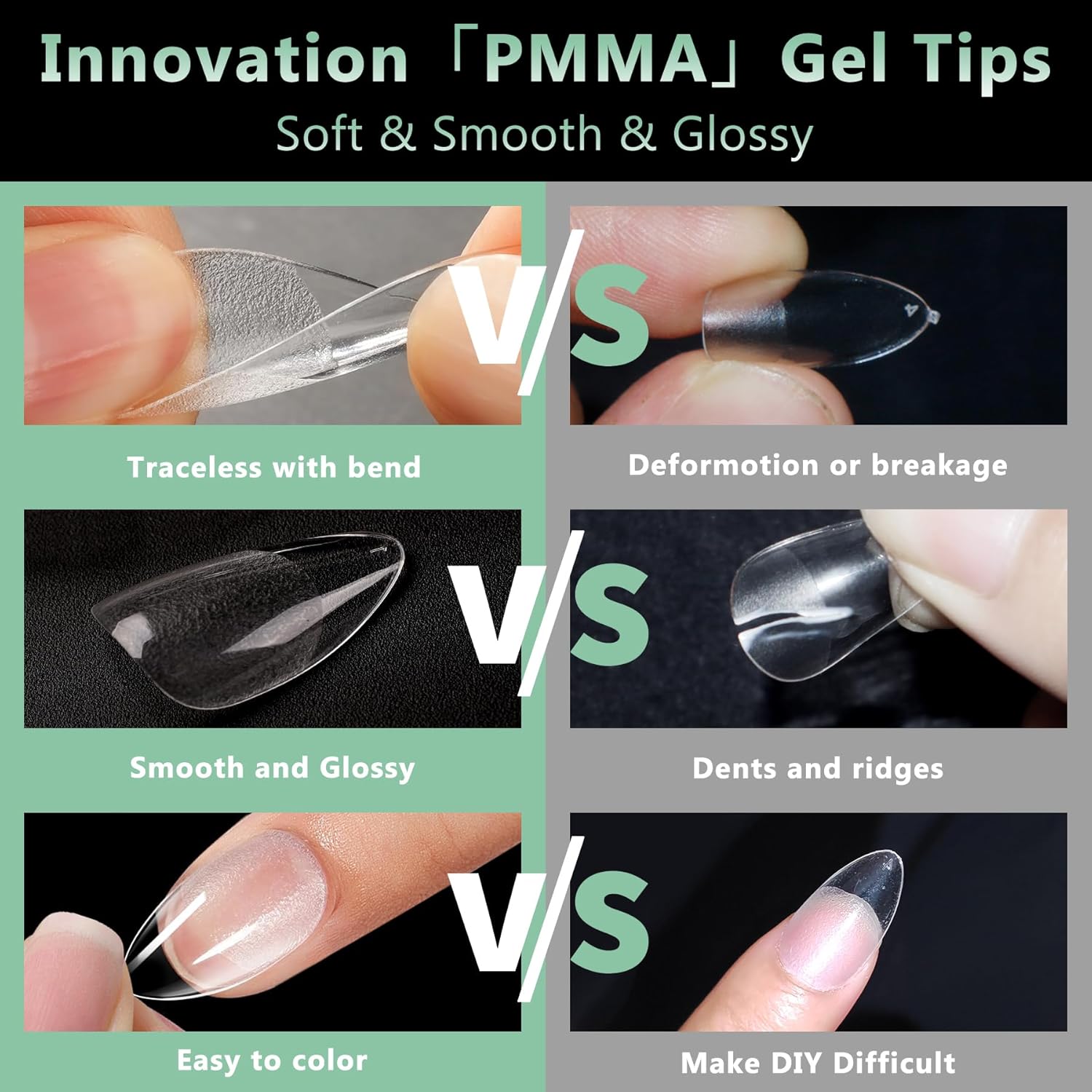- No Trace Soft Gel Nail Tips: Crafted from gelly soft gel material, these fake nails leave no trace even when bent. Their bright clarity allows for easy pressing, trimming, and painting, helping you create your ideal nail shape effortlessly. Perfect for a true DIY manicure.
