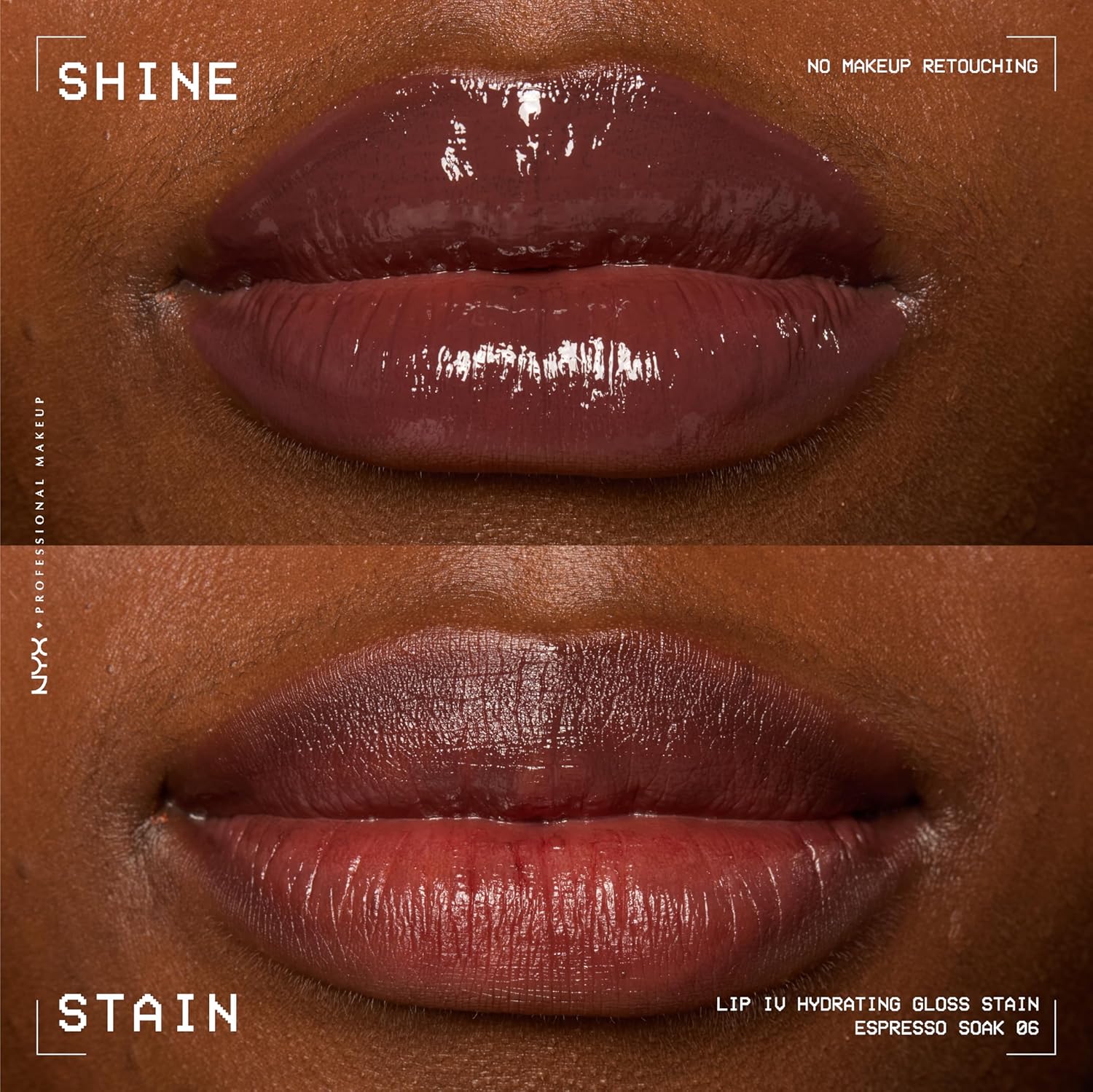NYX PROFESSIONAL MAKEUP Lip IV Hydrating Glossy Lip Stain with 12HR Hydration - Espresso Soak (Brown)