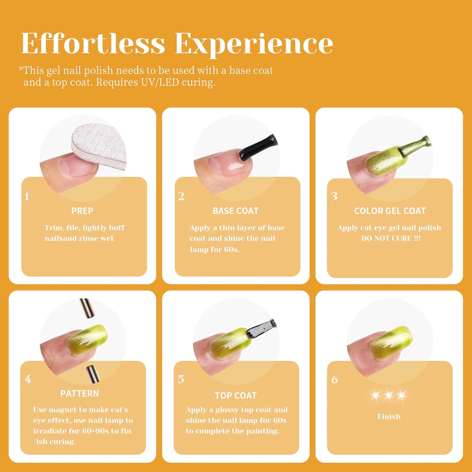 - Achieve stunning nails with TUTUYU's Light Orange Cat Eye Gel Nail Polish, which features a captivating cat eye effect that adds depth and allure to your manicure.