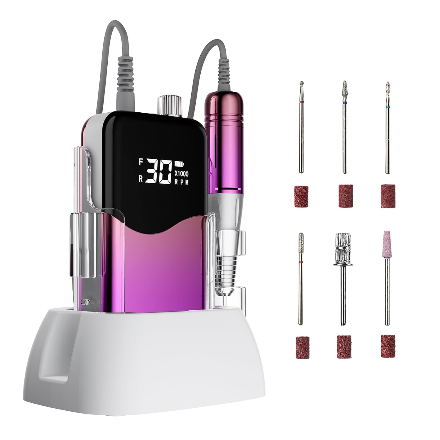 CIVPOWER Nail Drill Professional: 35000RPM Electric Nail File - Portable Rechargeable LED Display Nail Tool Kit- Manicure Pedicure Salon Home DIY Purple