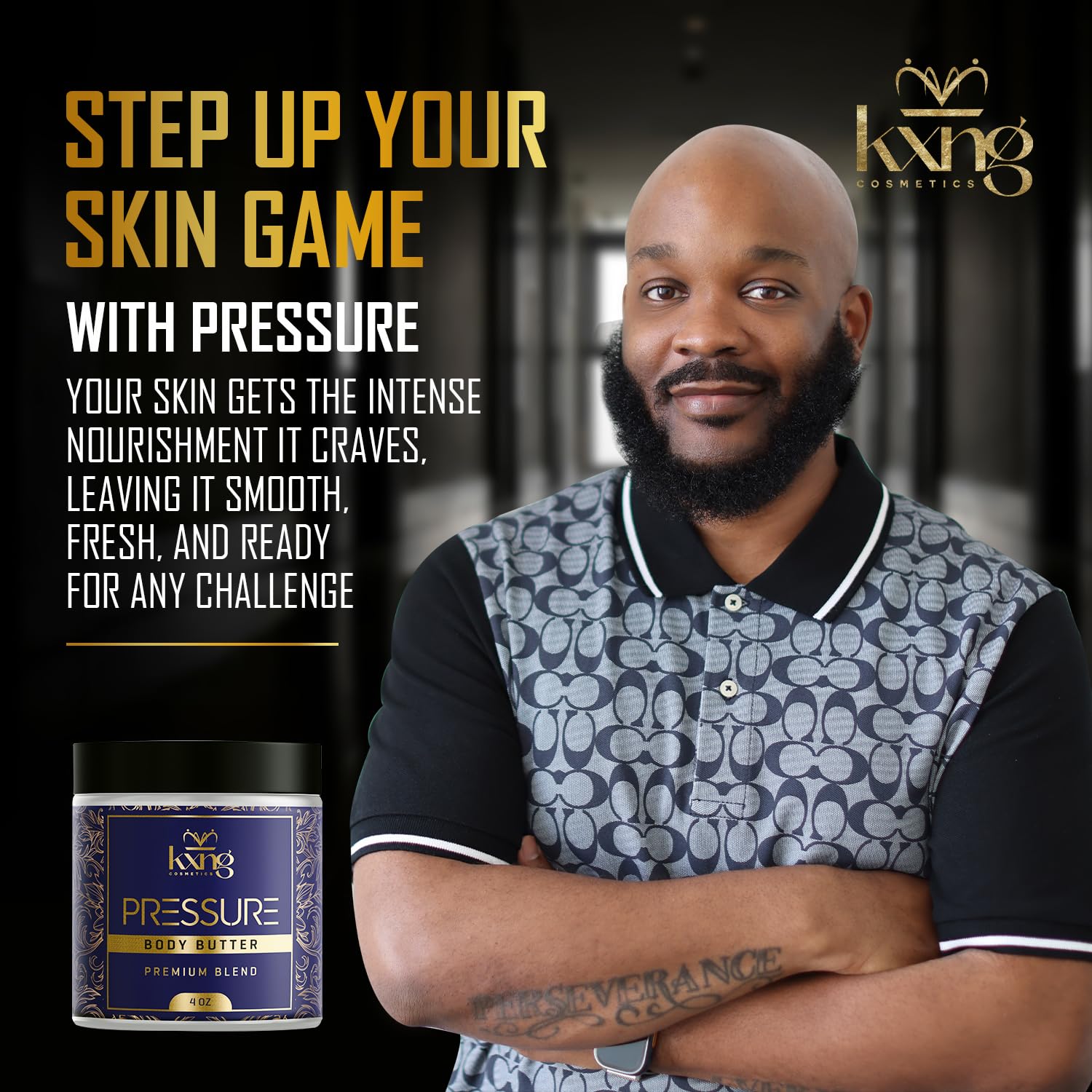 - PHEROMONE INFUSED - Body Butters, Creams, Lotions and Oils for Men by KXNG Cosmetics. Moisturize and nourish All Skin types: extremely dry skin, normal, oily, combination, mature, and sensitive. Organic Raw Shea Butter, Cocoa Butter, Mango Butter, Kokum Butter, Coconut Oil, Body, Hand, Foot.