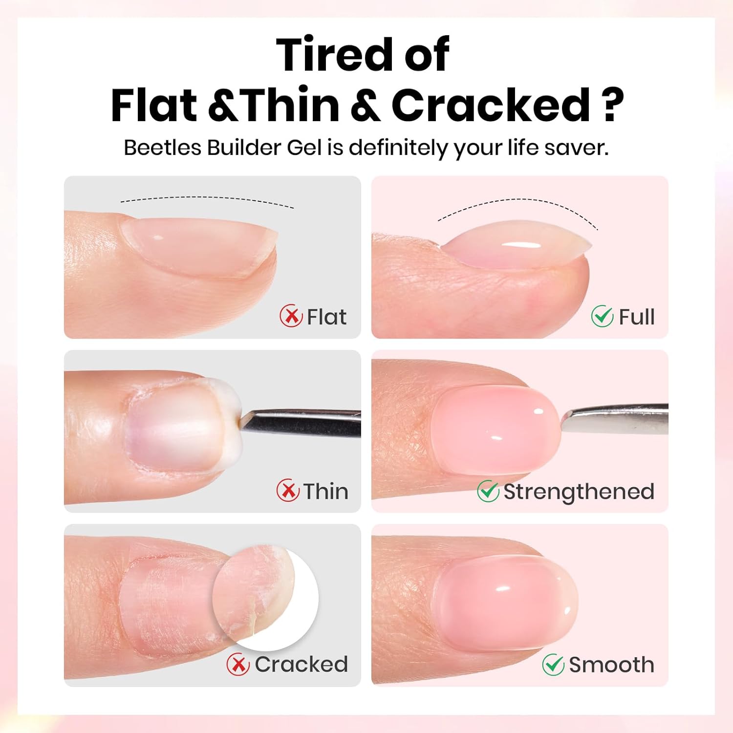 - Hema-free & Safe Formula : Beetles upgraded HEMA-free, gentle formula Builder Nail gel & Gel Top and Base Coat set formulated to minimize irritation, making it ideal for users with sensitive skin or allergy-prone individuals. It does not contain irritating ingredients or adhesives that cause nail damage, and provides flawless pretty nail results.