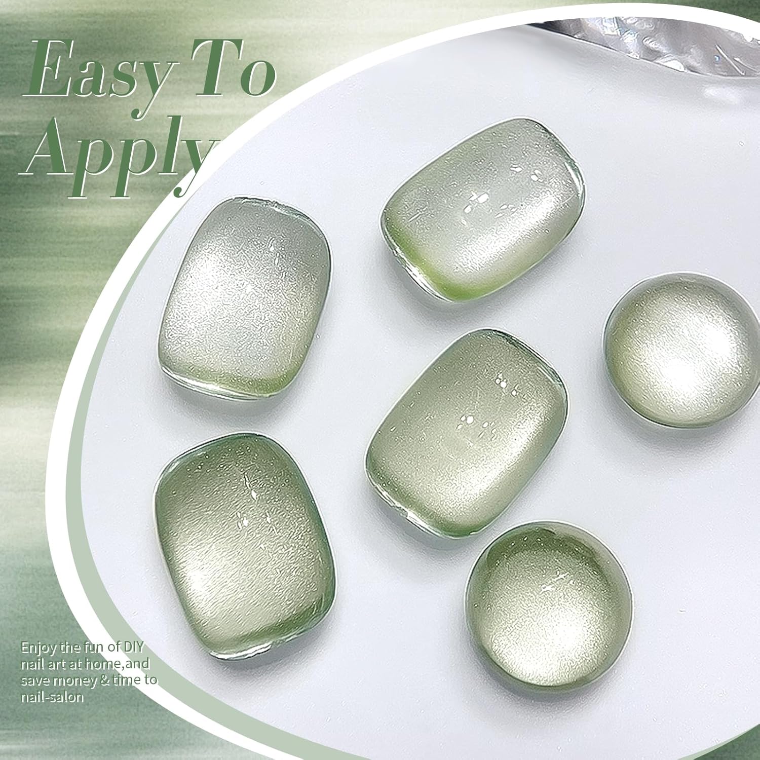 BORN PRETTY Cat Magnetic Eye Gel Nail Polish,Spring Green Jelly Glass Magnetic Gel Polish, Jade Breeze Glitter Soak Off Nail Art Salon Manicure Home Gift 15ml