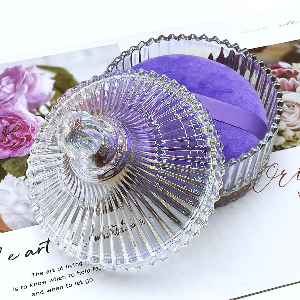 - Decorative Glass Powder Jar:The powder puff jar is made of high-quality glass, which is thick and sturdy. The design is elegant and luxurious for long-lasting beauty, making a instant décor upgrade for your dressing table, bathroom,nurseries, or vintage-themed rooms.