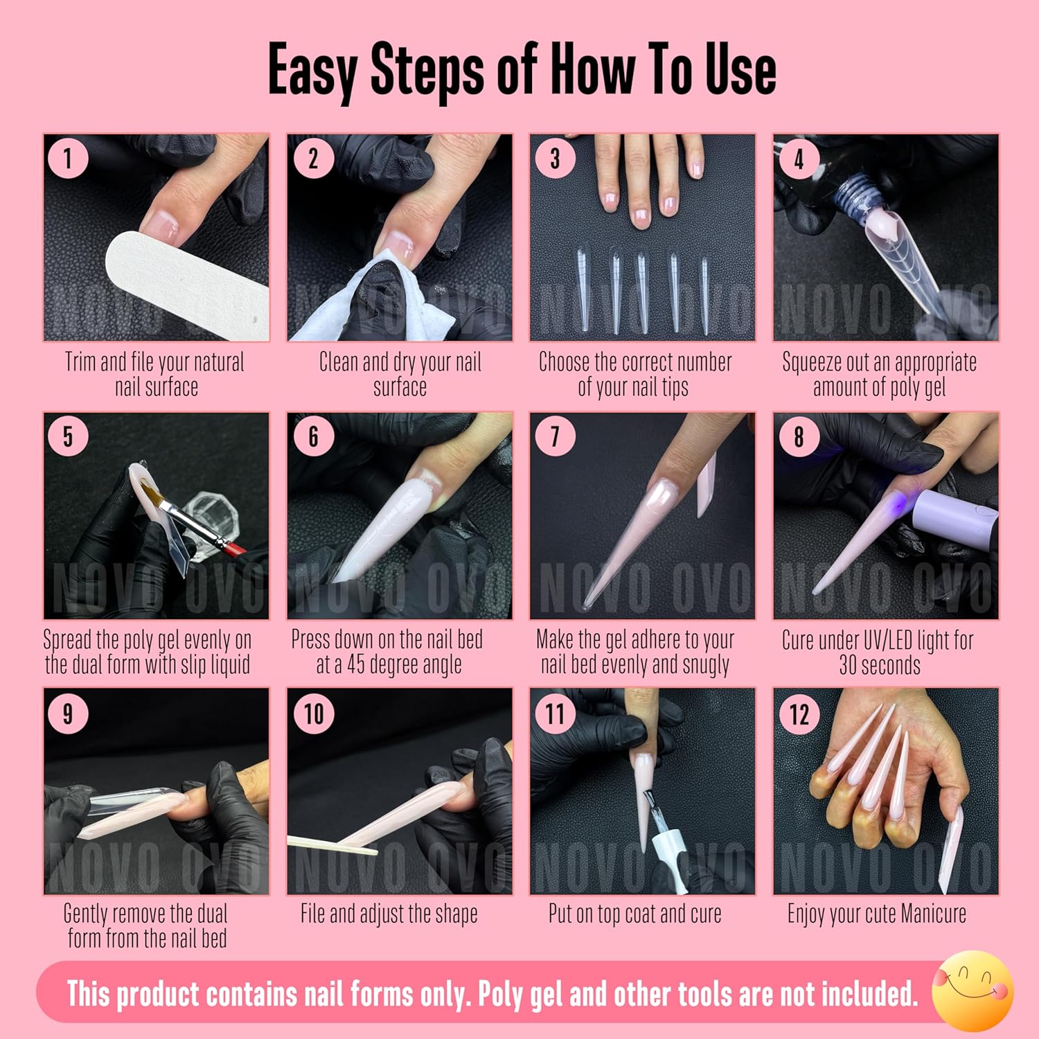 - THE WORLD'S FIRST XXXL OR XXXXL RUSSIAN ALMOND DUAL FORM: At the demand of our clients—nail artists and DIY enthusiasts who embrace the latest trends—NOVO OVO is excited to unveil this innovative Super Long Russian Almond dual form. Effortlessly create stunning nails that are ideal for holiday parties and spooky festivities by filling the forms with poly gel, harder gel or builder gel positioning them on your nail, curing, and simply popping them off for a flawless 3D astonishing finish.