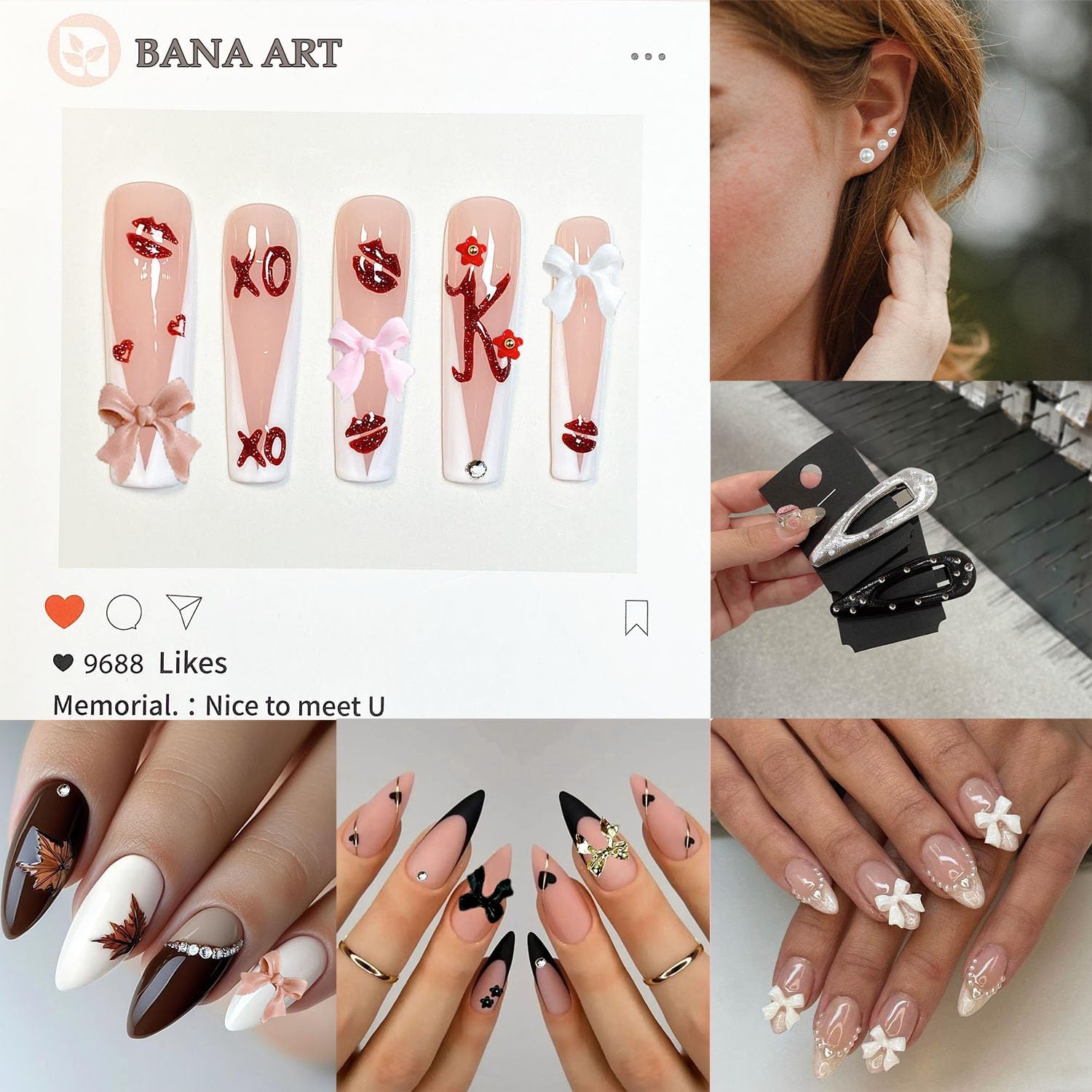 - Easy to Use: Suitable for natural or artificial nails, just clean the surface of your nails, put them on your nails with glue, then place the accessories on, wait for the glue to dry, and then apply a layer of nail polish and let it cure. which is very simple and suitable for professionals and beginners alike