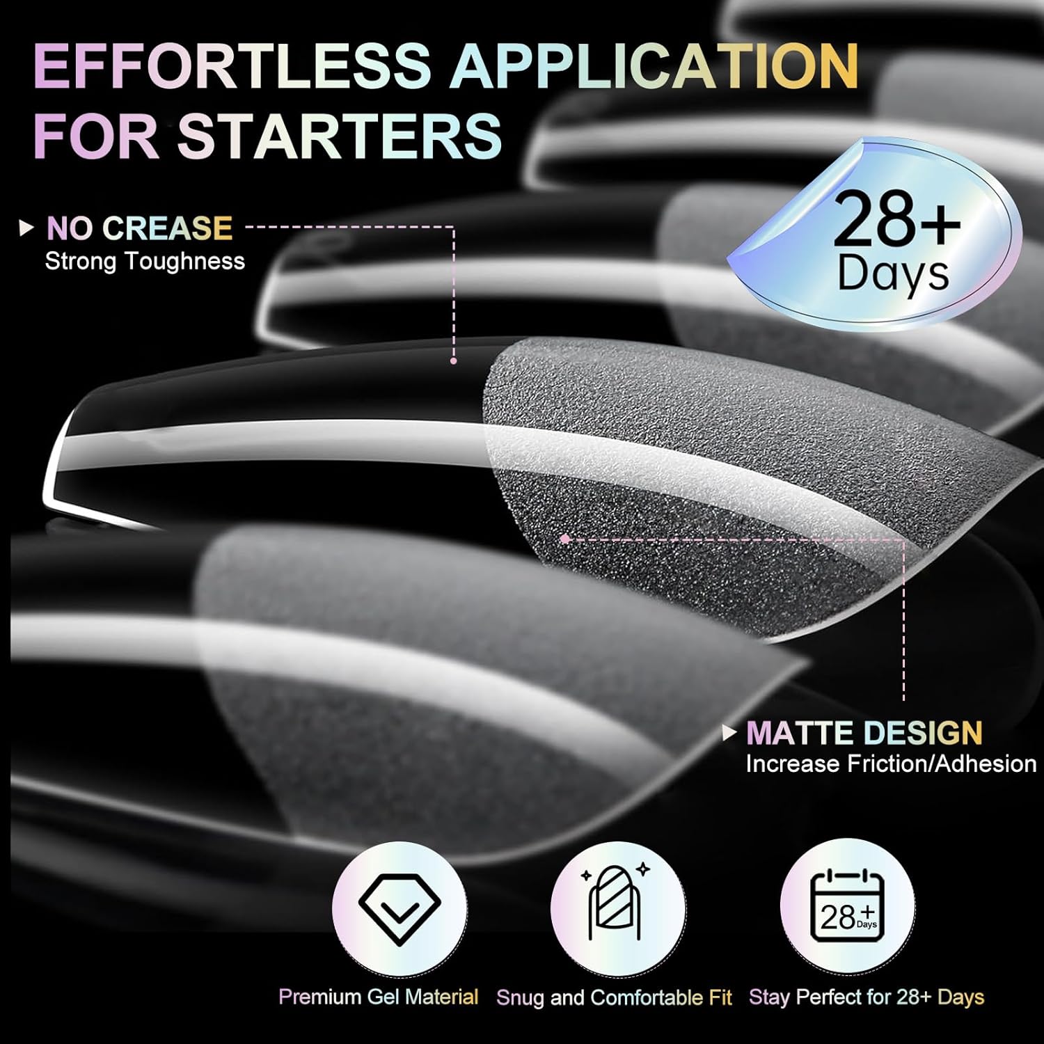 - 【Easy to Use】 Our smooth edge of tips have a more shallow curve, convenient to press on nails beds tightly, without feeling uncomfortable "tightness", ensuring better adhesion for nail glue or gel. Pre-shaped and ready to use, they require no filing, saving time while sticking more securely
