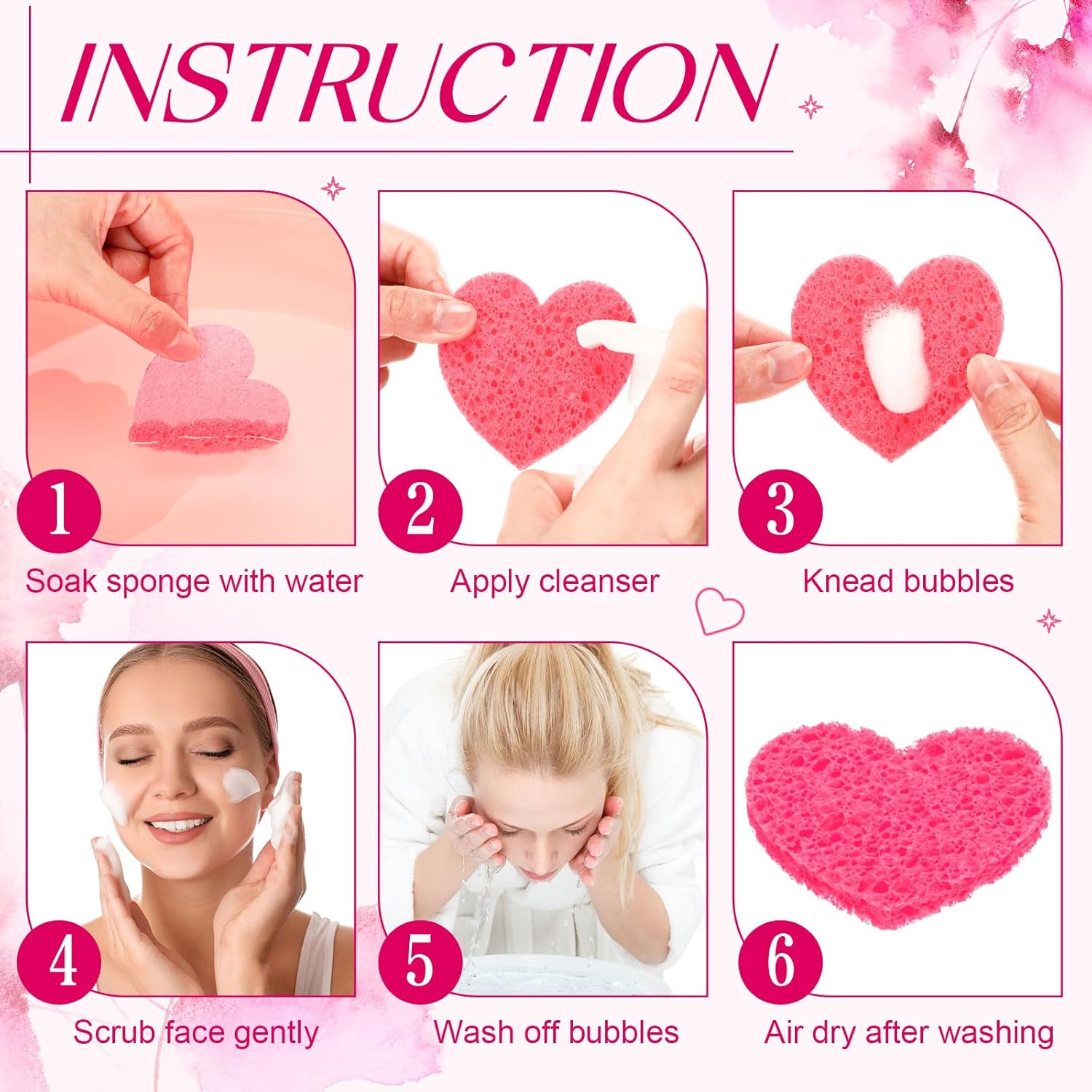 - Rich Quantity to Use and Share: you will receive 48 pieces of heart shape facial sponges, 48 pieces of round shaped face sponge with 1 piece of acrylic storage container, suitable for daily facial cleansing needs and replacement demands, you can also share with your friend