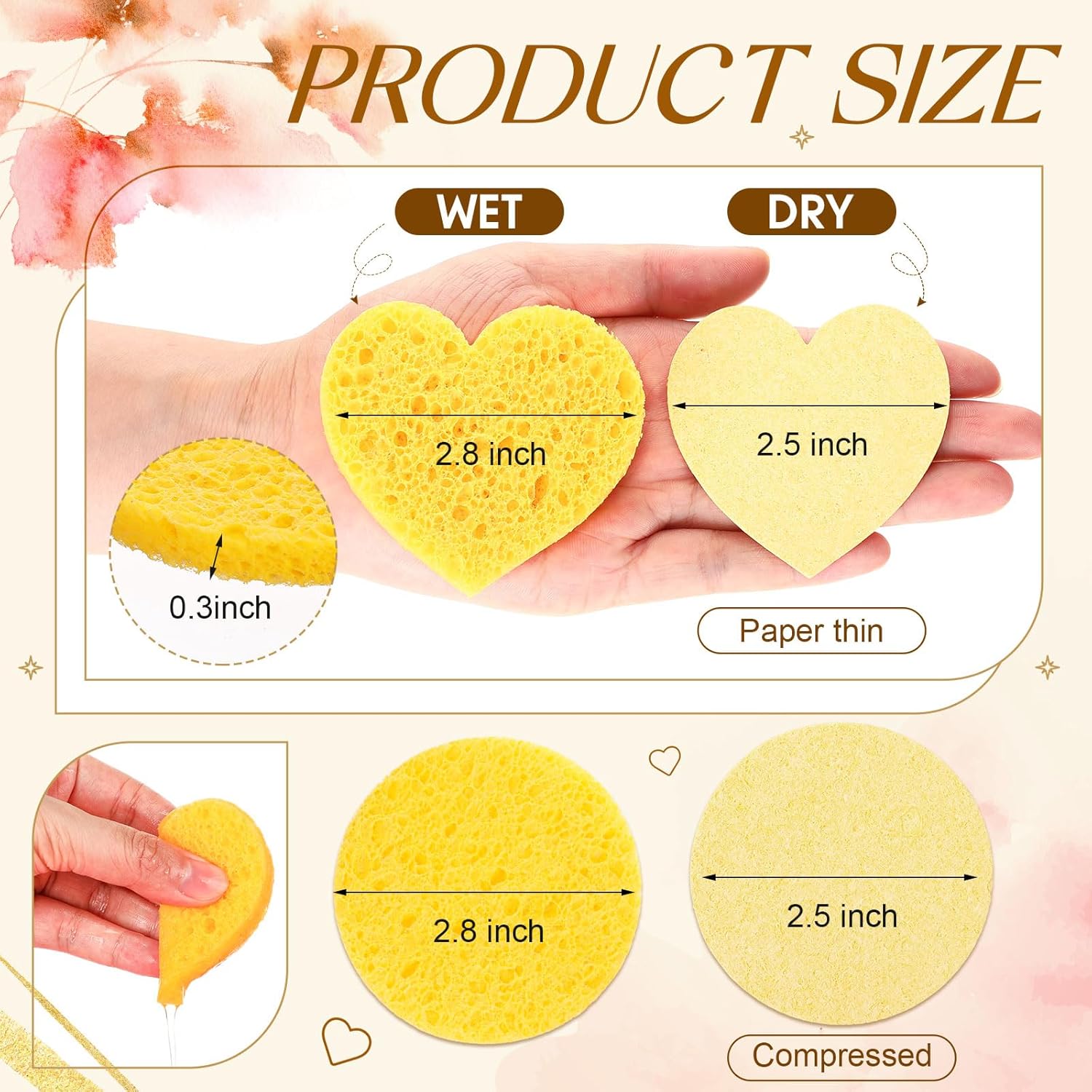 - Rich Quantity to Use and Share: you will receive 48 pieces of heart shape facial sponges, 48 pieces of round shaped face sponge with 1 piece of acrylic storage container, suitable for daily facial cleansing needs and replacement demands, you can also share with your friend