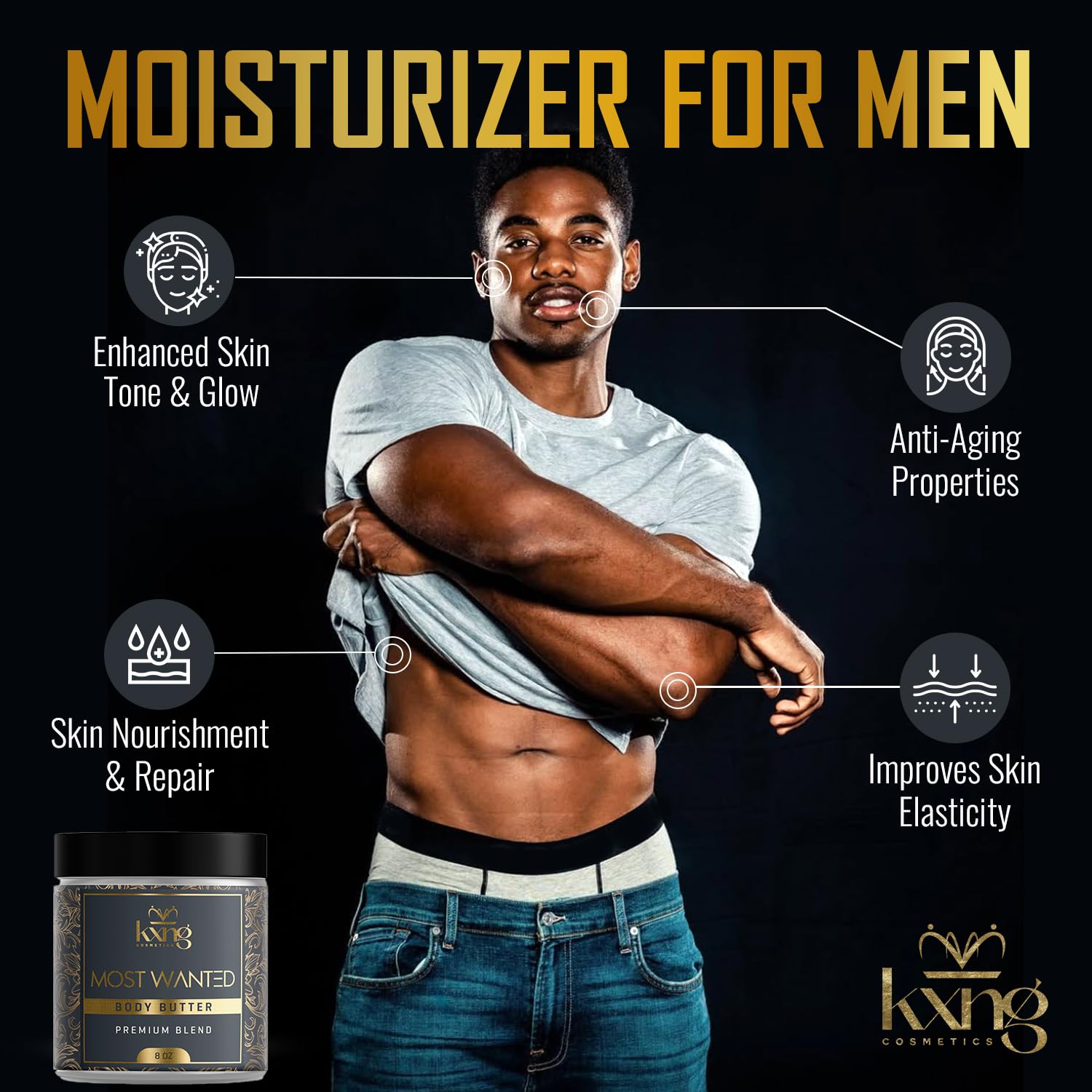 - MOISTURIZER for MEN - Indulge in Intense Hydration with its advanced formulation. Our shea body butter provides intense moisturization that quenches your skin's thirst and improves its texture. Deeply hydrates, leaving your skin irresistibly smooth, supple, and revitalized.