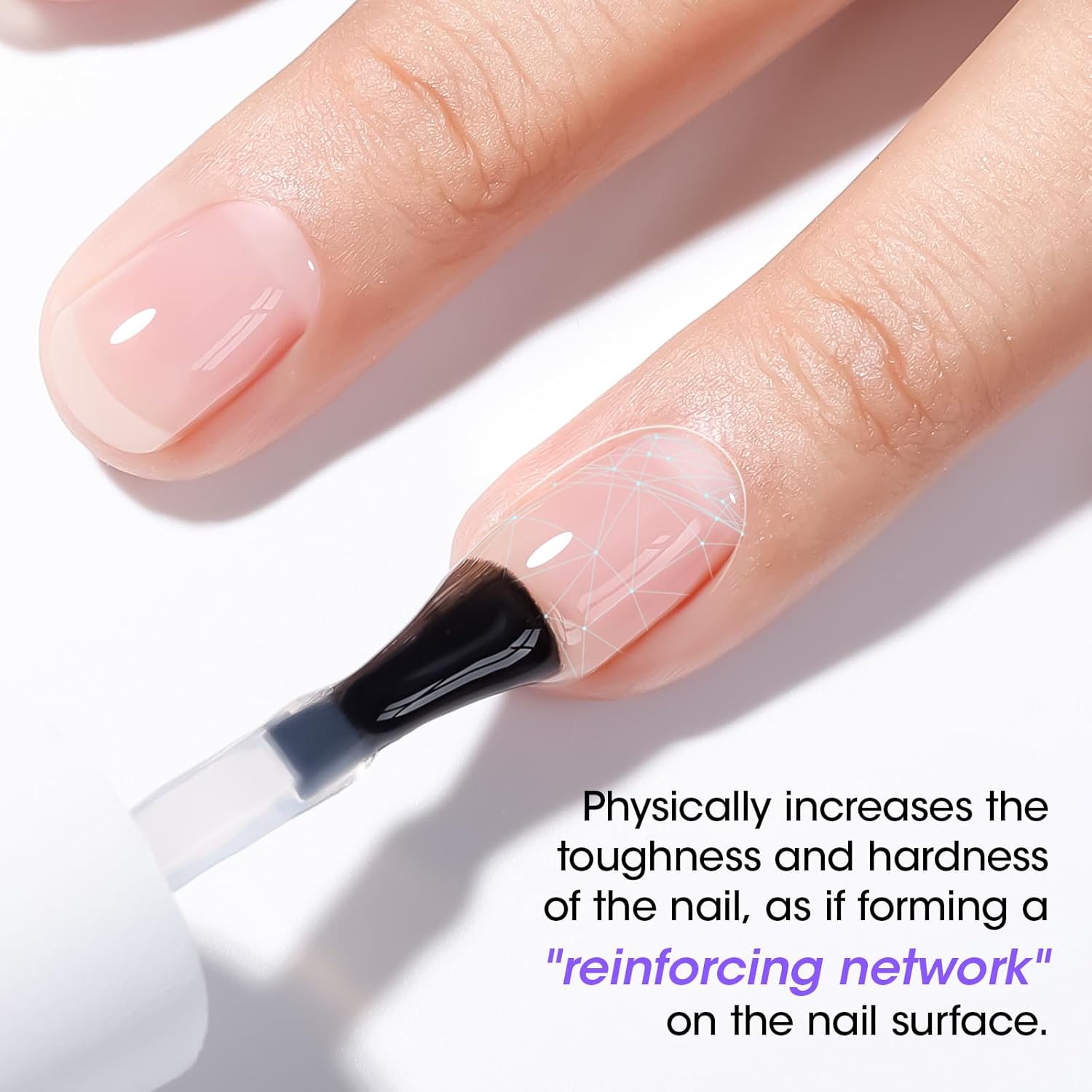 - 𝐄𝐧𝐫𝐢𝐜𝐡𝐞𝐝 𝐰𝐢𝐭𝐡 𝐑𝐞𝐩𝐚𝐫𝐚𝐭𝐢𝐯𝐞 𝐆𝐥𝐚𝐬𝐬 𝐅𝐢𝐛𝐞𝐫𝐬, 𝐄𝐟𝐟𝐞𝐜𝐭𝐢𝐯𝐞𝐥𝐲 𝐑𝐞𝐩𝐚𝐢𝐫 𝐃𝐚𝐦𝐚𝐠𝐞𝐝 𝐍𝐚𝐢𝐥𝐬: This fiber gel base coat is free of HEMA and features a gentle, health-focused formula. Despite its clear and transparent appearance, the fibers within the gel can still be observed under UV light. After application of this fiberglass base gel, the hardness of the nail surface can be increased by up to 90%, while its solidity improves by approximately 80%.