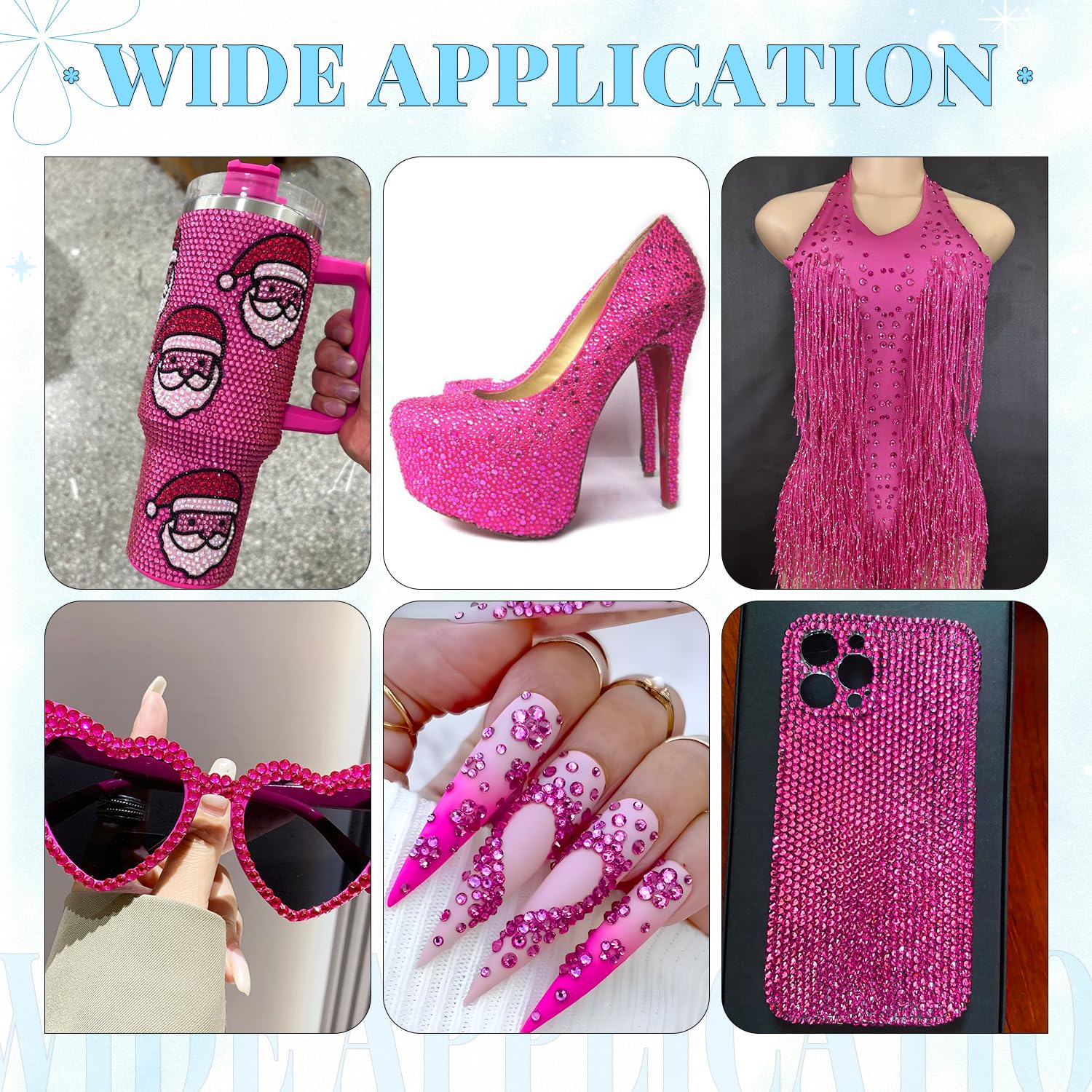 6000Pcs Resin Rhinestones for Bedazzling with 3Pcs B7000 Jewelry Glue, 1 Box Hot Pink Flatback Rhinestones for Crafting Crafts DIY, Crystals Gems for Clothing Shoes Tumblers Nail Art Makeup