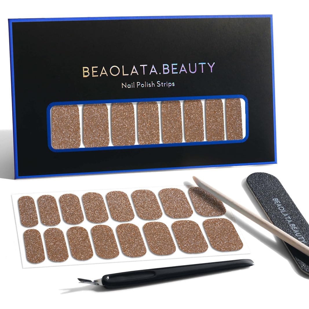 Nail Polish Strips, 32PCS Salon Quality Wraps, Long Lasting Gel Nail Stickers for Women Easy Apply& Remove (Dazzling Gold)