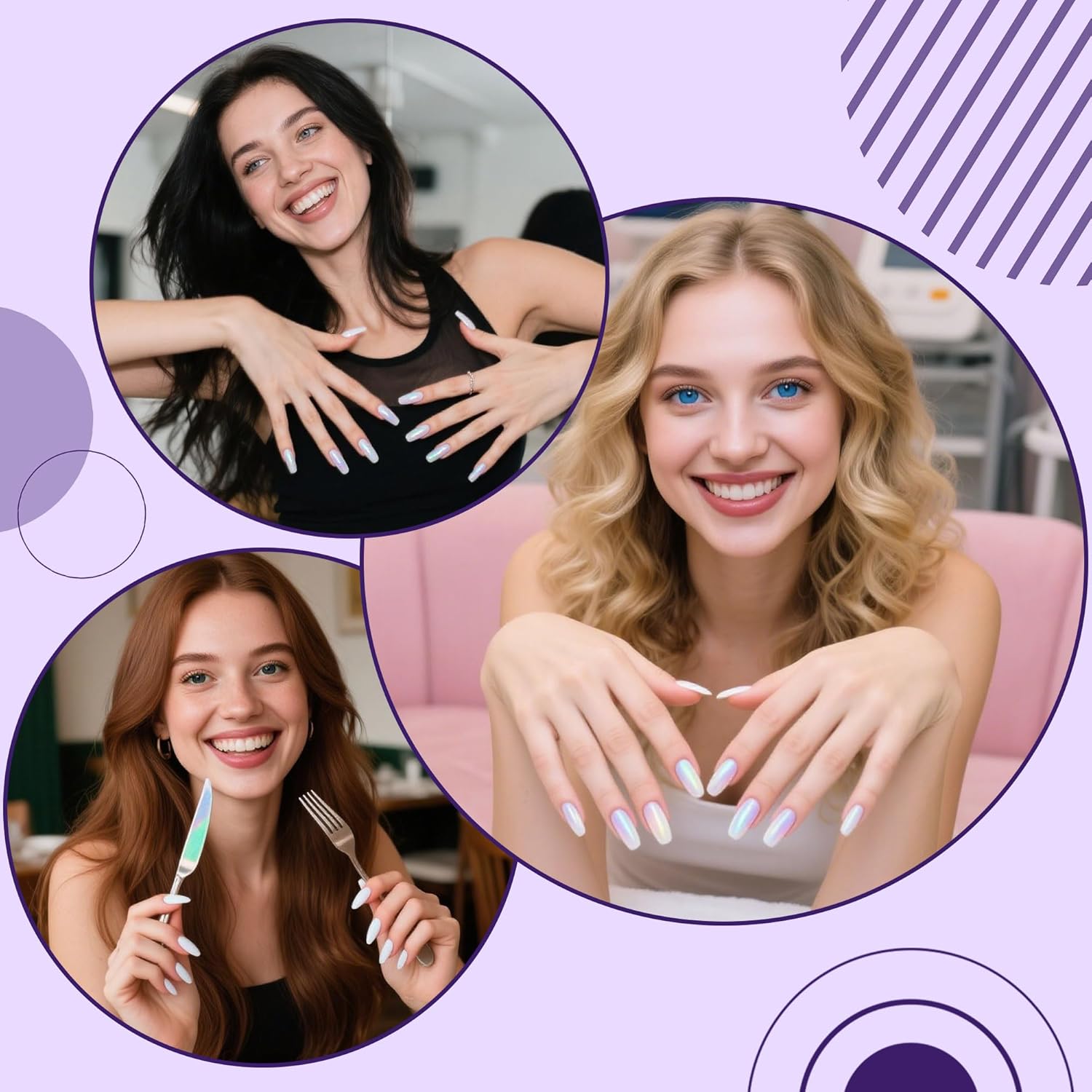 - WIDE APPLICATION:These powders need to be used with Gel nail polish(color gel,gel base coat and glossy gel top coat). Some regular Polish can also be used, but not all. These powders can be used on natural nails, UV gel nails, acrylic nails or false nail tips. You can use them very easily. It is a good solution with rhinestones 、nail art fimo or other accessories to build a nice nail art