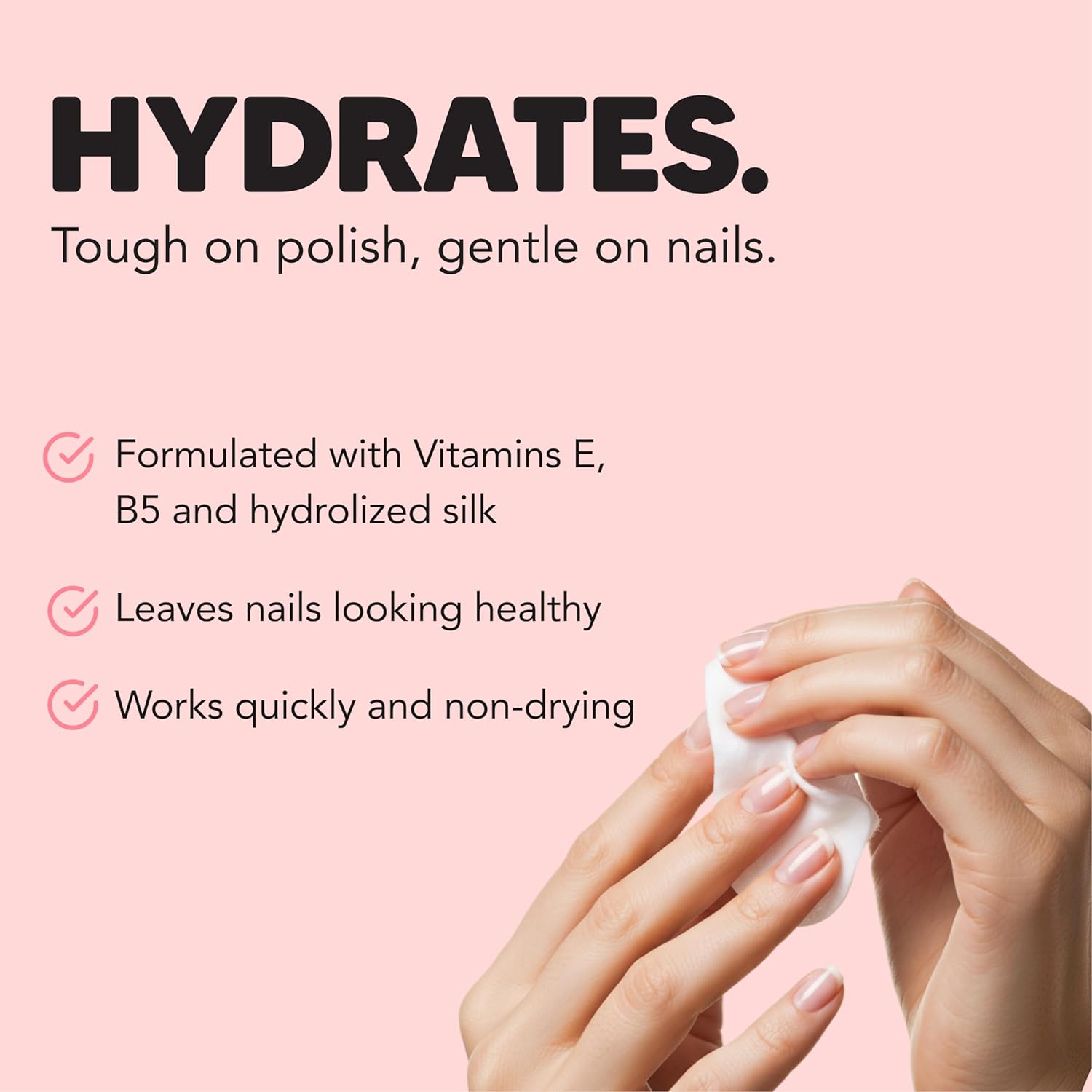 - 3-in-1 Nail Care Formula - More than just a nail polish remover: dissolves polish, hydrates nails, and helps strengthen with every use for visibly healthier nails over time.