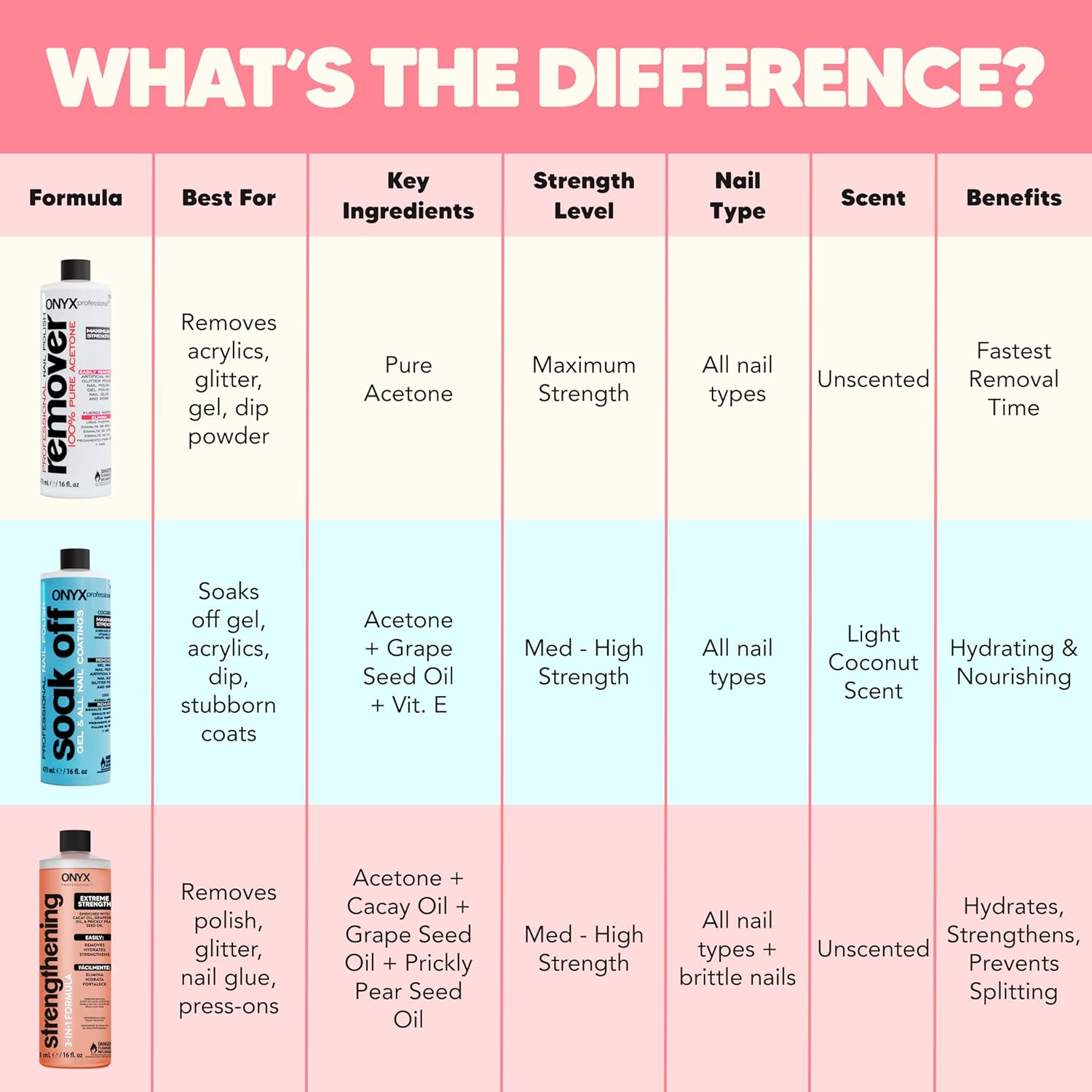 Onyx Professional 3-in-1 Strengthening Nail Polish Remover with 7 inch Nail File, 16 fl oz - Removes Nail Polish, Hydrates, Strengthens Nails | Infused with Grapeseed Oil, Cacay Oil, Cactus Seed Oil