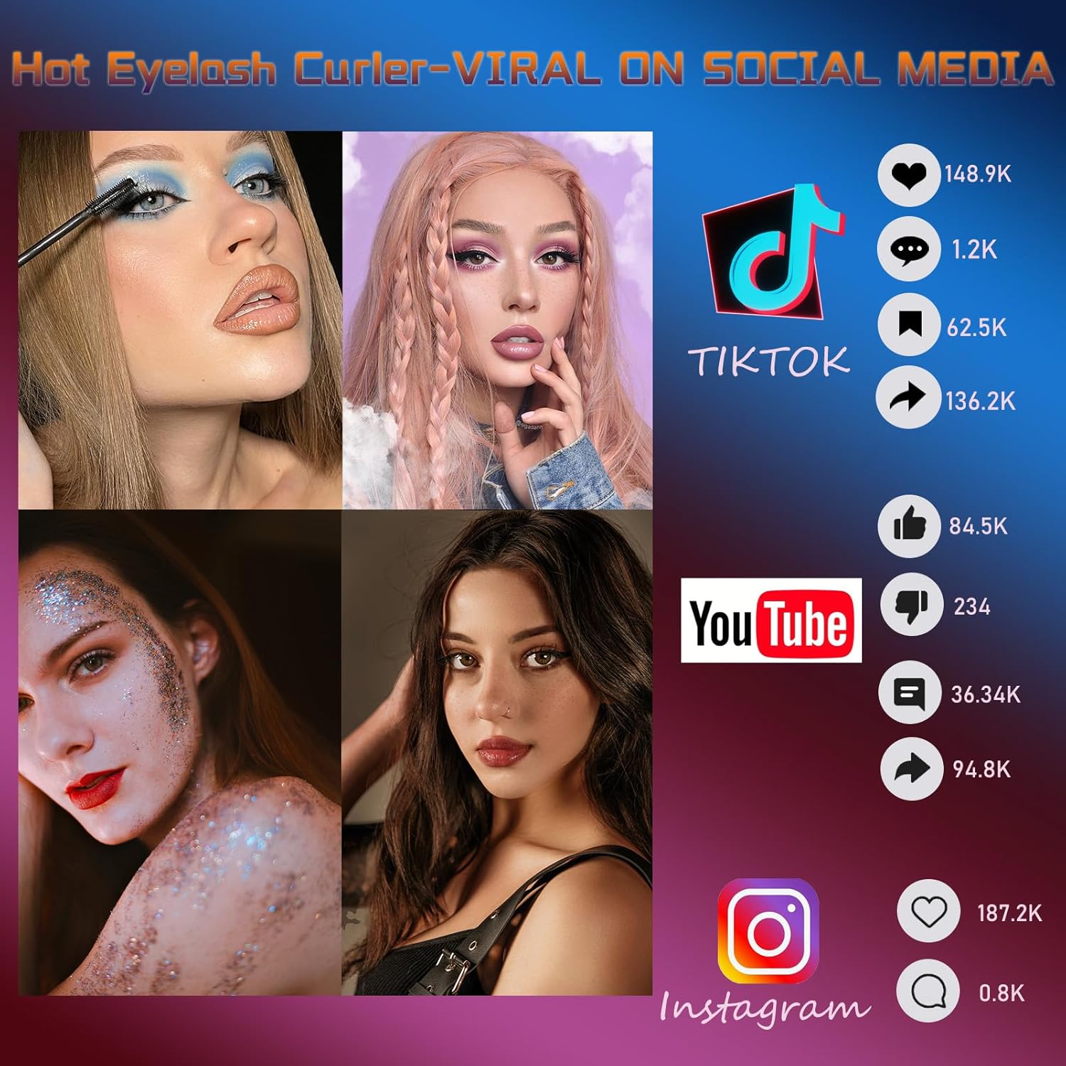 - Quick Natural Curling - The heated eyelash curler can fast heat up within 5-10s, creating a perfect natural curling eye makeup quickly without crimping or pinching. Lasting for 24 hours