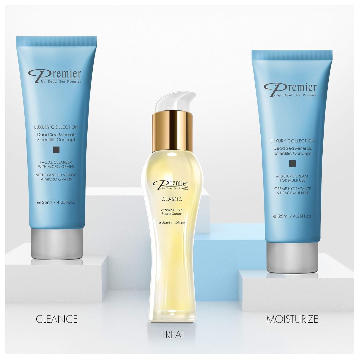 Premier Dead Sea Facial Cleanser with Micro Grains, Luxury collection foaming face wash, daily use skin care, nondrying, anti-aging Skin Care with aloe vera, witch hazel, Dermatologist Tested 4.4fl oz