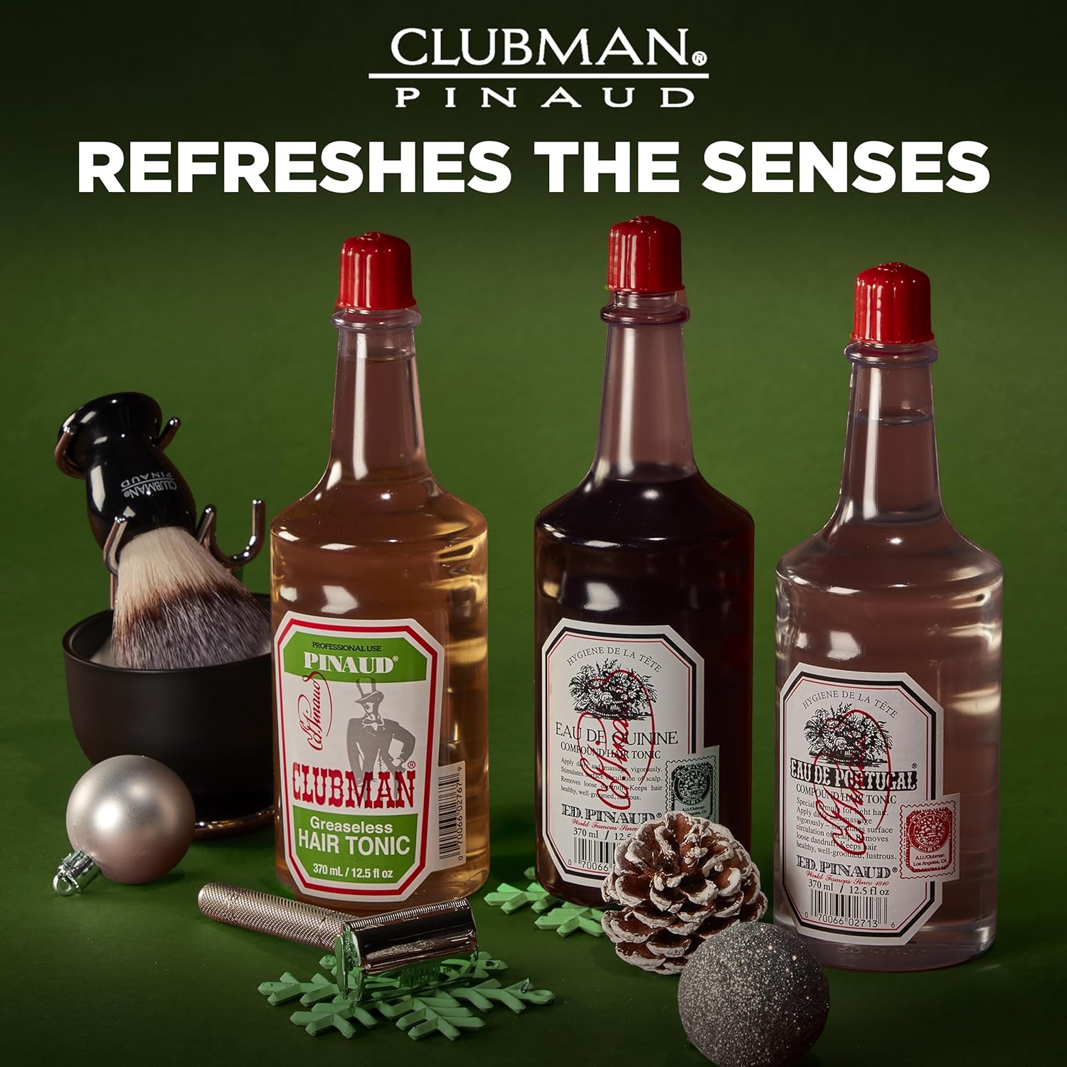 - Handy Grooming Must-have: The Clubman Pinaud Hair Tonic comes in a 12.5 fl oz bottle packed with only the finest beneficial ingredients. Great for your home bathroom countertop or barbershop arsenal. Experience a familiar confidence with each use!