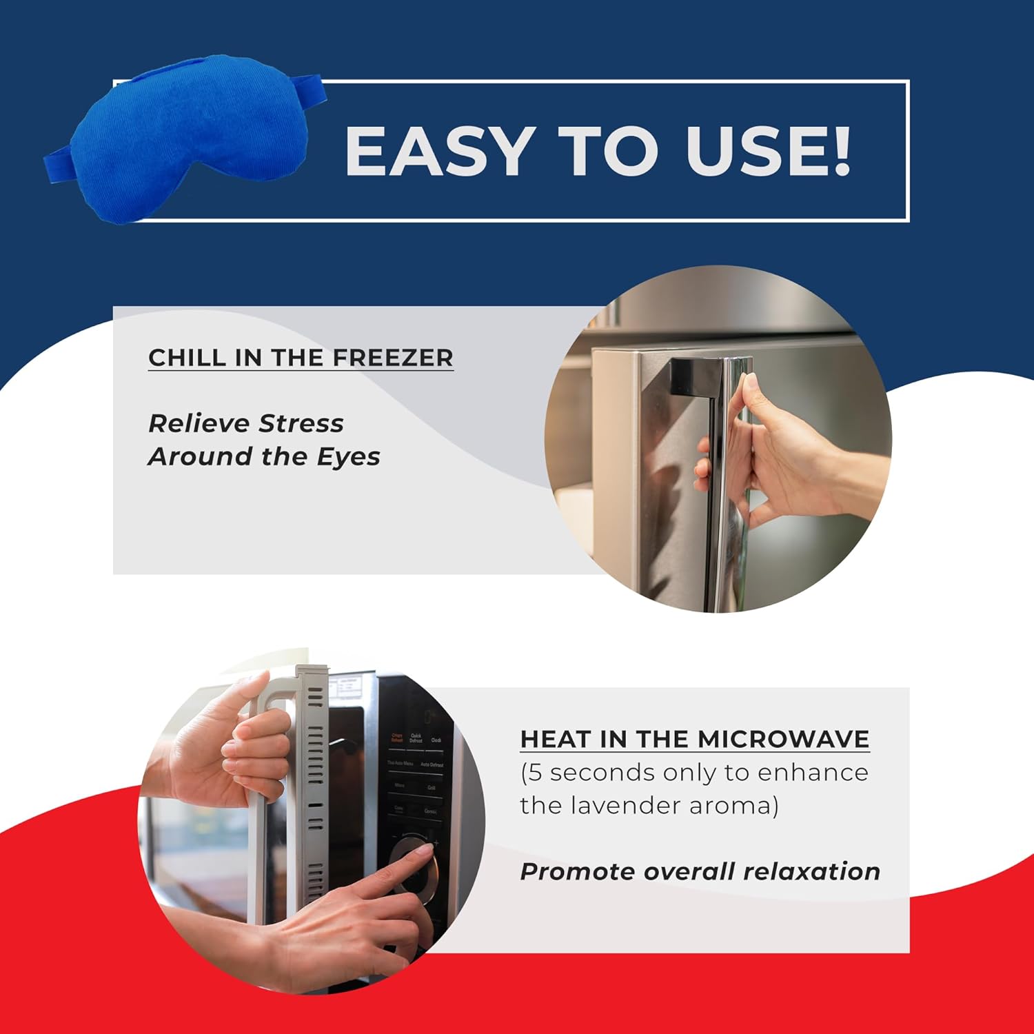 Lavender Eye Mask - Weighted Eye Mask for Relaxation and Yoga - Cold Therapy Eye Masks for Women, Men - 1 Eye Mask Blue