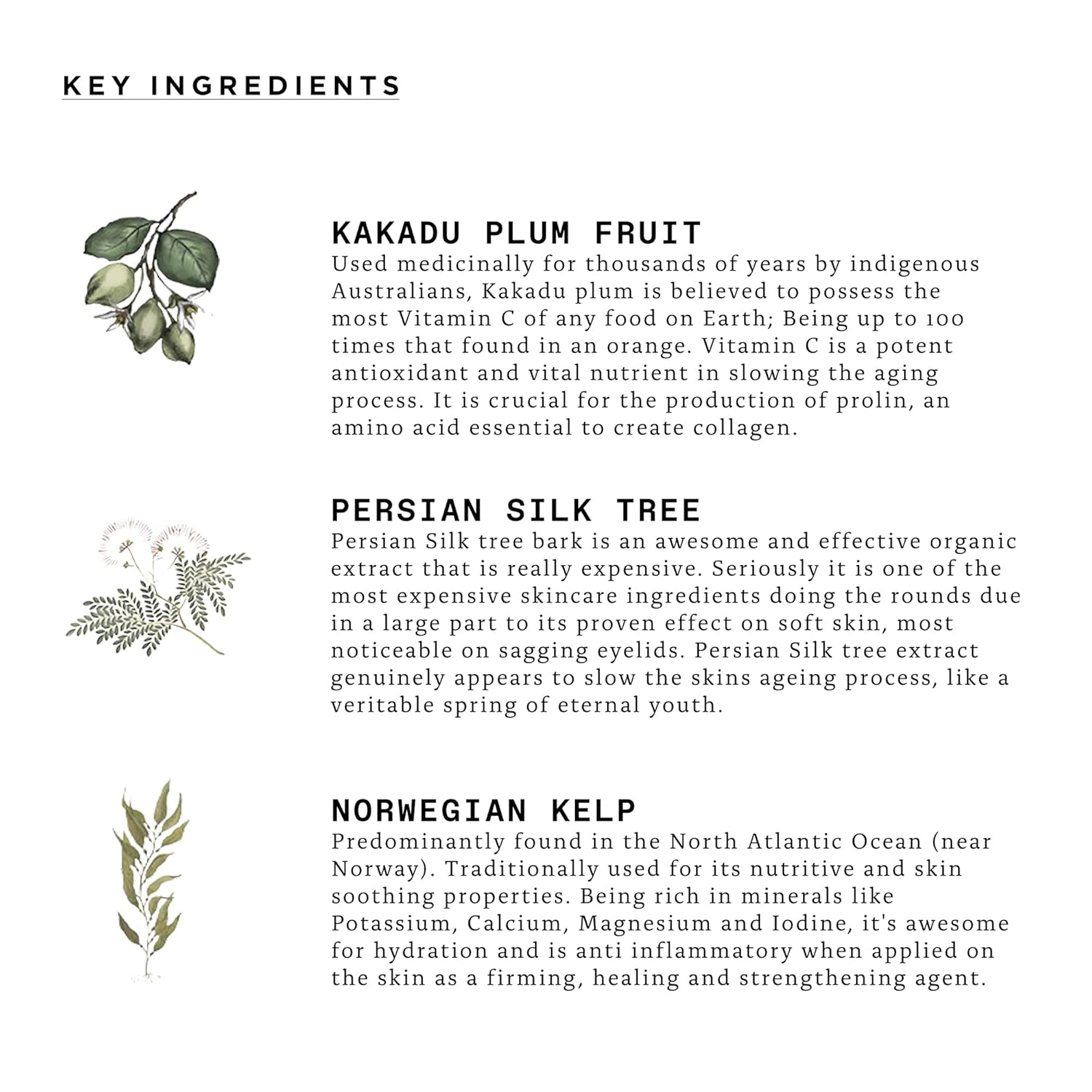 - 97% Natural Based Ingredients - Kakadu Plum Fruit Extract, Norwegian Kelp, Persian Silk Tree, Swamp Maple Bark Extract, Horopito, Rosemary Extract to name a few!