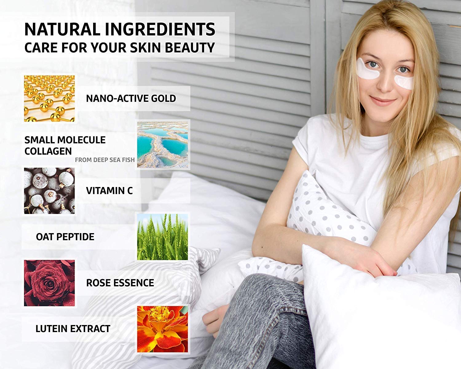 - Multiple Effects: The gold eye mask can effectively relieves chronic fatigue and diminishes the formation of fine lines, wrinkles, crow-feet lines around the eye area, minimizing eye-bags and fades dark circles remarkably, bringing you a youthful and radiant pair of alluring eyes.