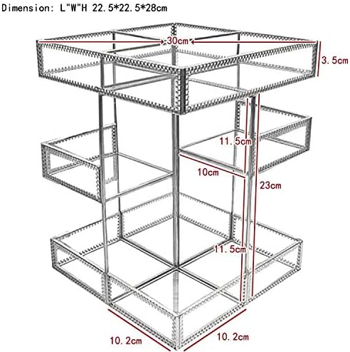 - LARGE BUT EASY TO PLACE-4layer and Spin design can hold many items while take small space ,Measures- L*H*W:9.06*11.81*11.81inches,has compartments of various sizes and shapes to keep all your essentials,such as Skincare,jewelry separate, organized and neatly displayed. The compartments hold Makeup/Jewelry/ Brushes/ Perfumes/SkincareBottles/Foundations ornecklaces etc anything about your collection.