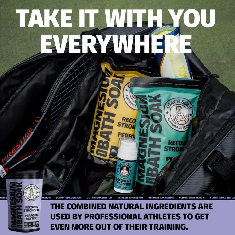 Coach Soak Recovery Bath Soak - Faster Absorption Than Epsom Salt for Pain - Rejuvenating Magnesium Flakes with 21 Minerals, Essential Oils & Bath Salts, 3lbs (Calming Lavender)