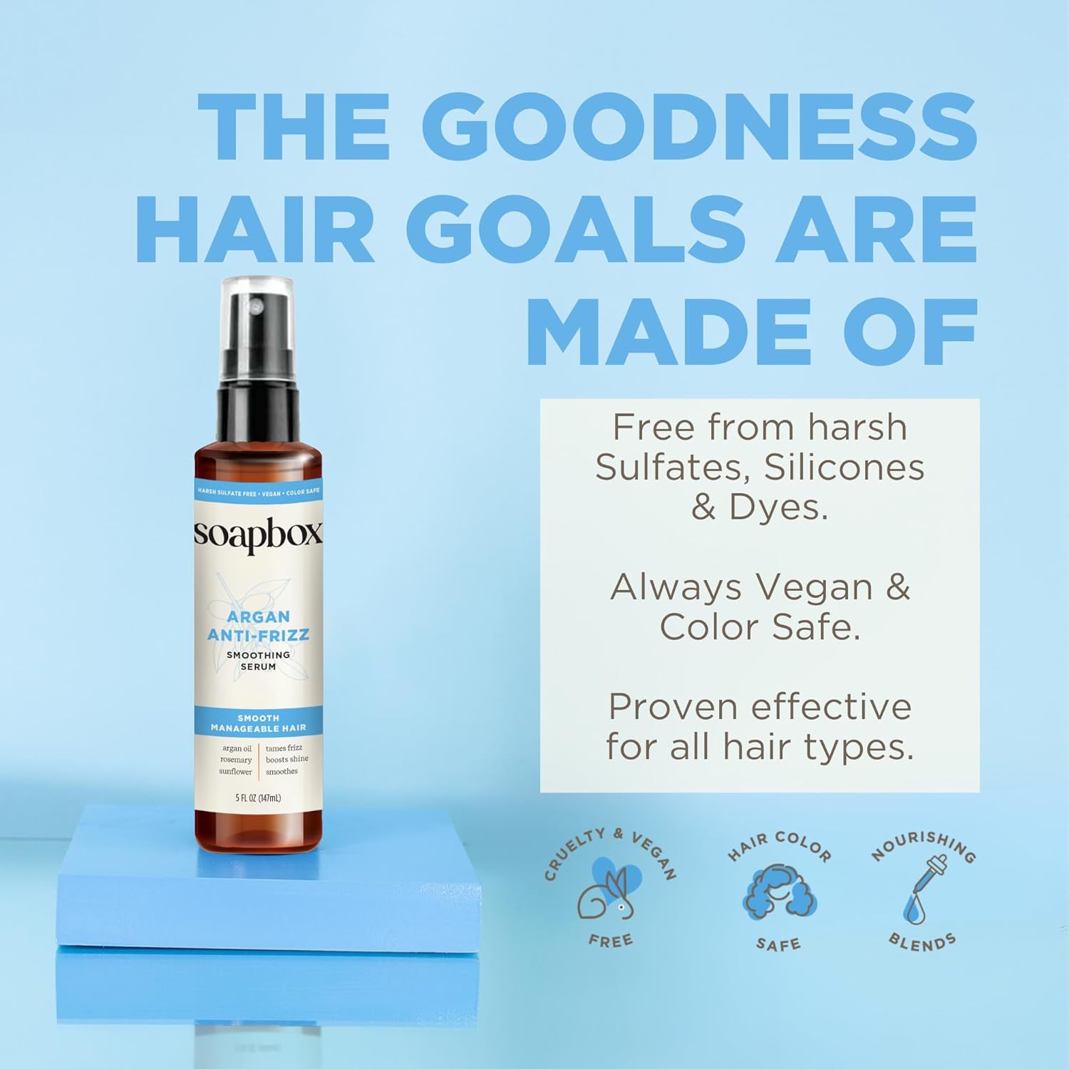 Soapbox Argan Oil Smoothing Serum, Anti-Frizz Serum For All Hair Types with Shea Butter & Vitamin E Repairs Damage & Controls Flyaways - Vegan, Cruelty and Gluten Free (5 Fl oz)