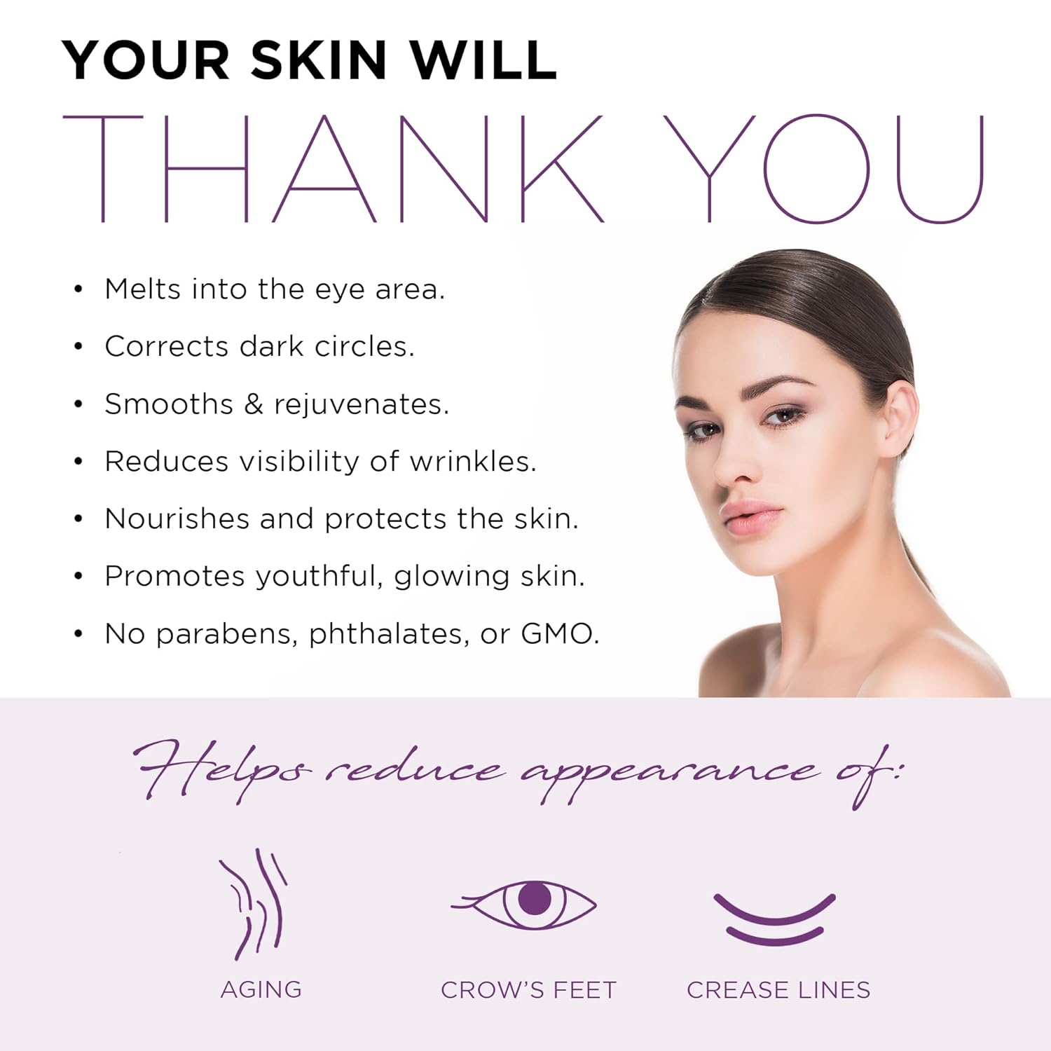 - Product Benefits : Helps to hydrate, tighten and brighten tired, dull and dehydrated skin, minimizing signs of aging and fatigue including, puffiness, dark circles and crow’s feet leaving your skin with a more youthful and glowing appearance Helps to hydrate, tighten and brighten tired, dull and dehydrated skin, minimizing signs of aging and fatigue including, puffiness, dark circles and crow’s feet leaving your skin with a more youthful and glowing appearance