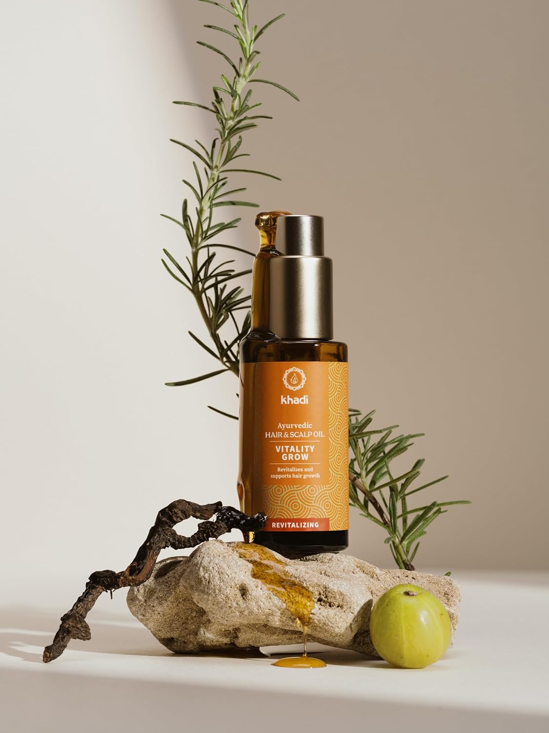 khadi VitalityGrow Hair Oil - Rosemary for more volume & hair growth - against hair loss - 100% natural, herbal, vegan & silicone-free 1.69 fl oz