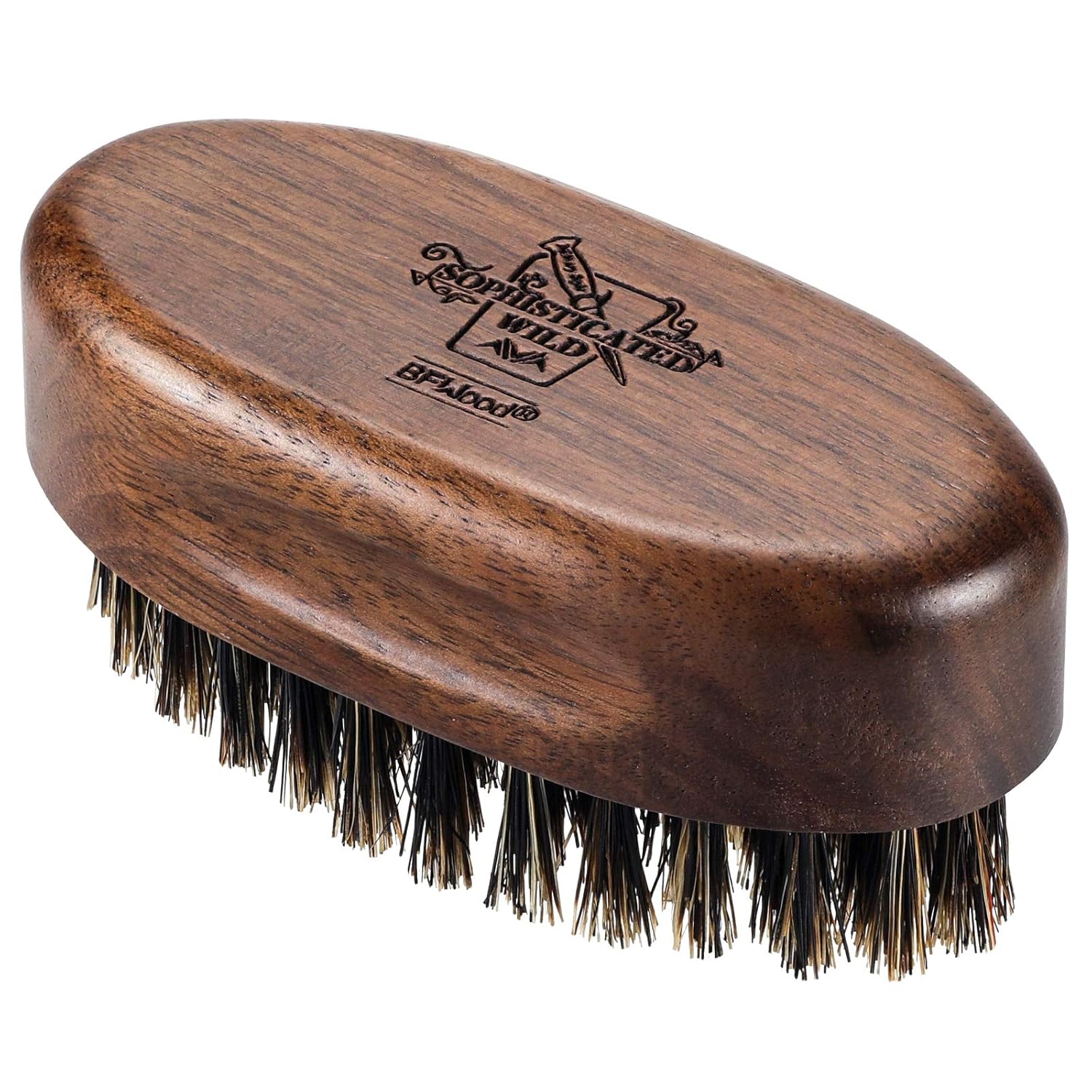 BFWood Small Travel Beard Brush - Natural Boar Bristles with Black Walnut Wood