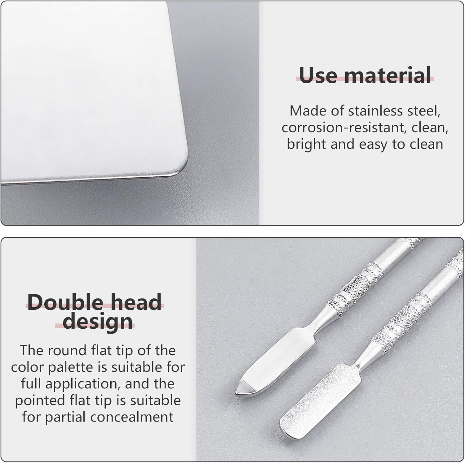 - Good Quality--The makeup palette is made of high quality stainless steel with smooth surface, durable easy to clean; Suitable for a variety of cosmetics.