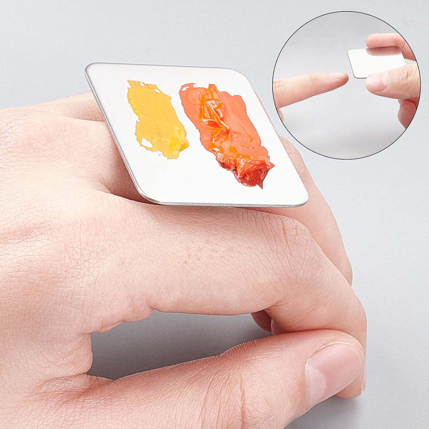 - Package & Size--Here come with 4pcs finger ring palette and 2pcs palette spatulas, palette size about 1.7 x 1.3 inch (4.3x3.3cm), they are small and portable, itโs convenient to take anywhere.