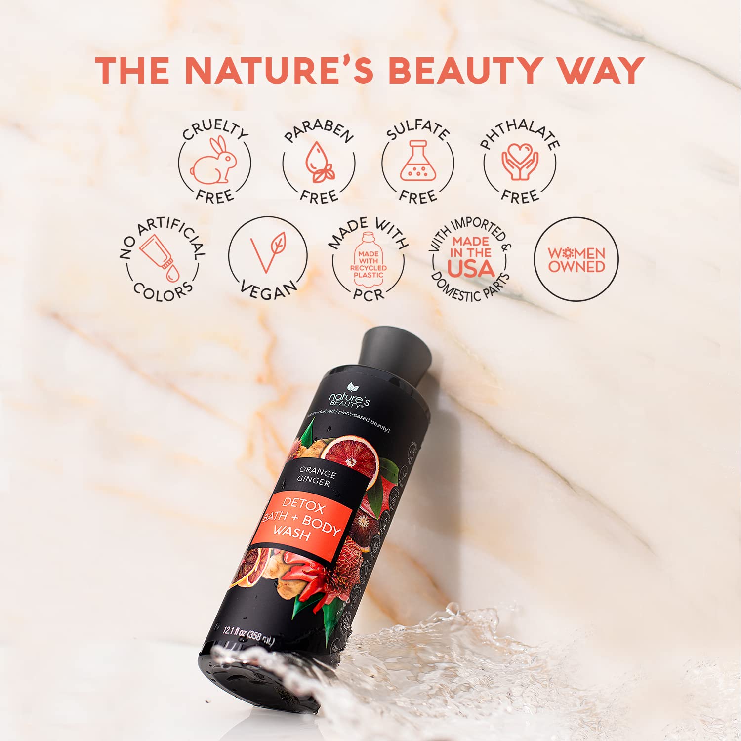 Nature's Beauty Orange Ginger Detox Body Wash Multi-Pack - Gentle Bath + Body Cleanser, Improve Skin Tone + Texture Made w/Vitamin C, Sunflower + Almond + Avocado Oils, 12 fl oz (2 Pack)