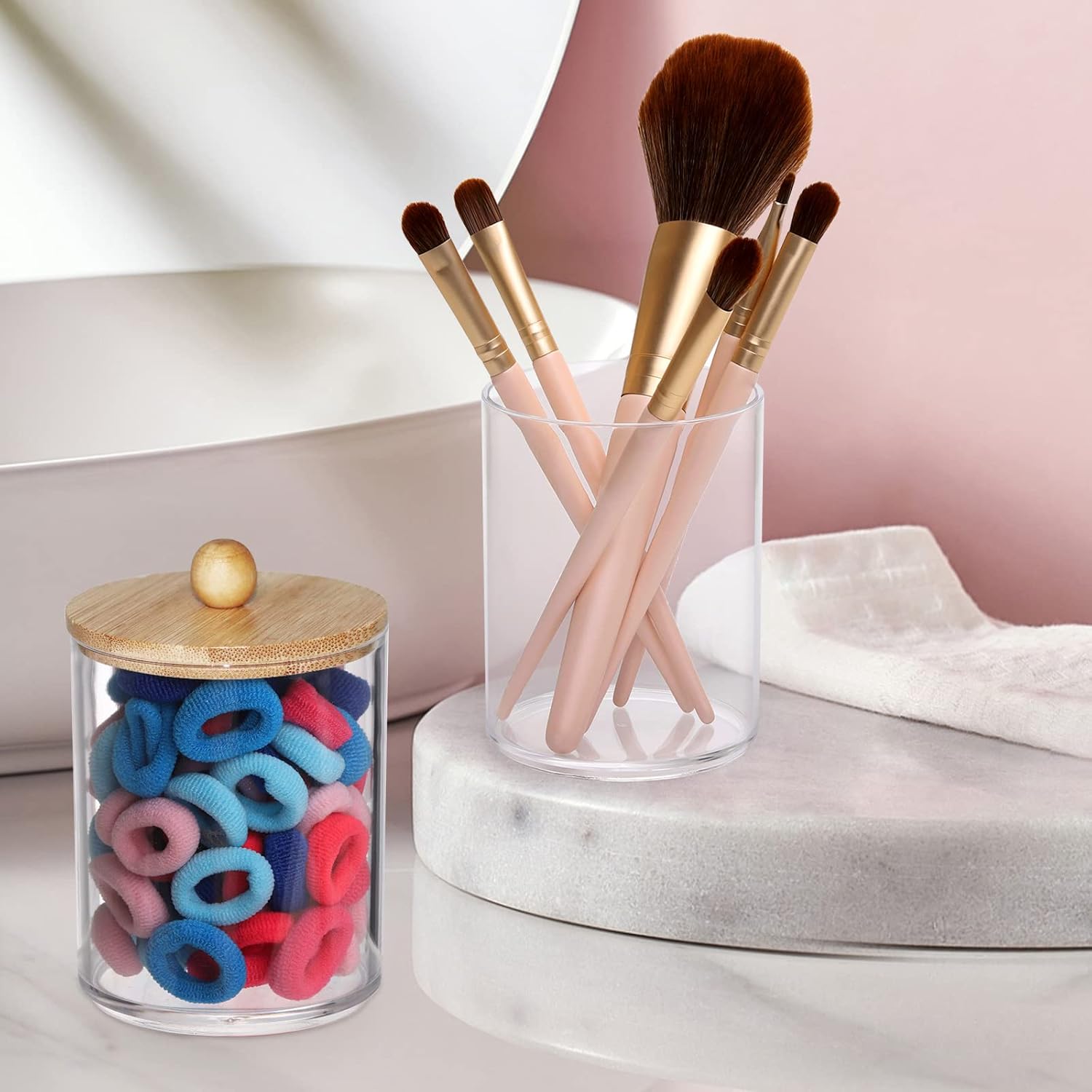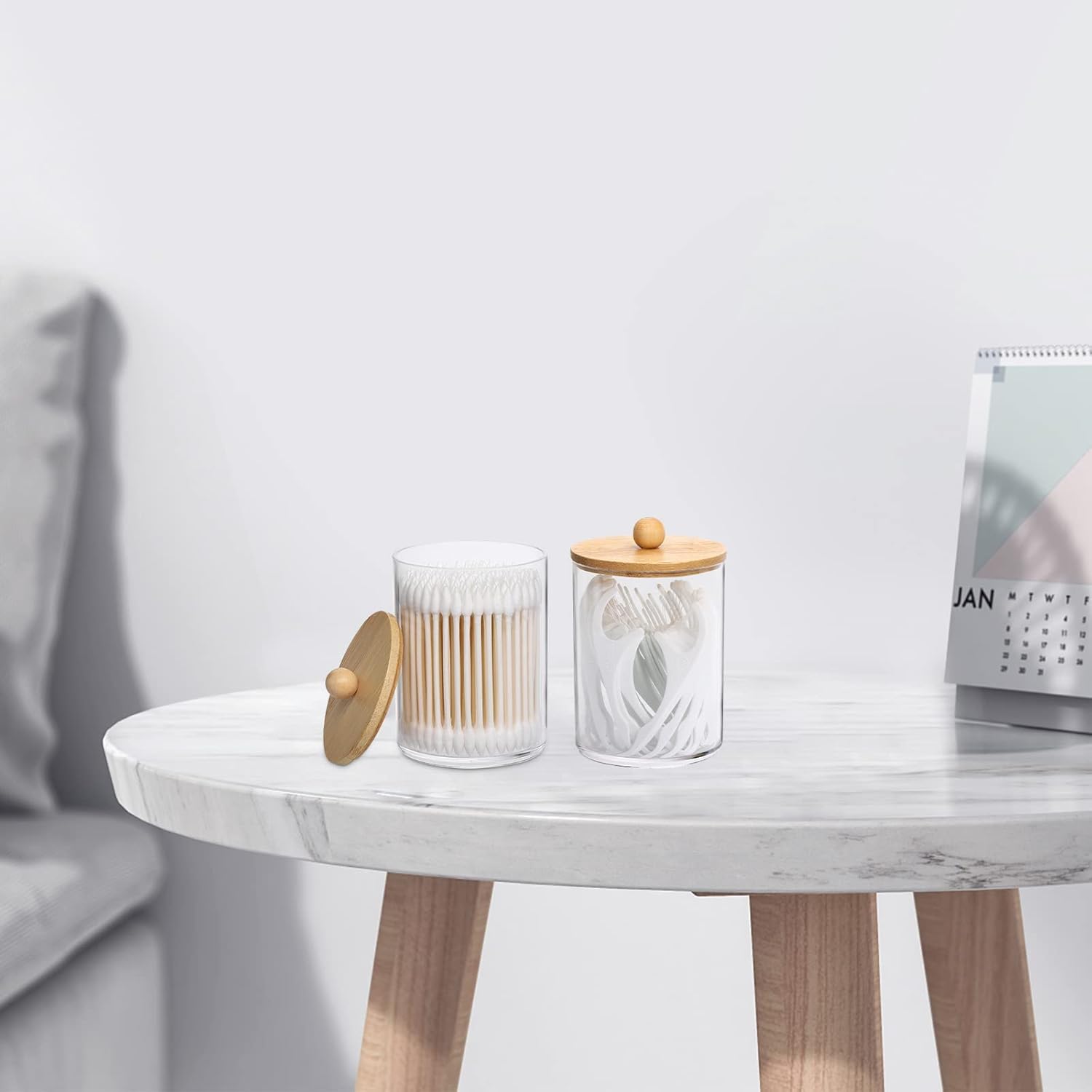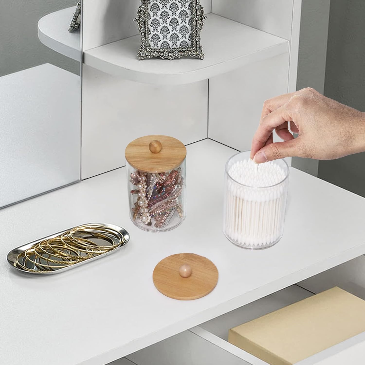 - Clear storage jars is functional and decorative,not just for the bathroom, also perfect in the kitchen or living room