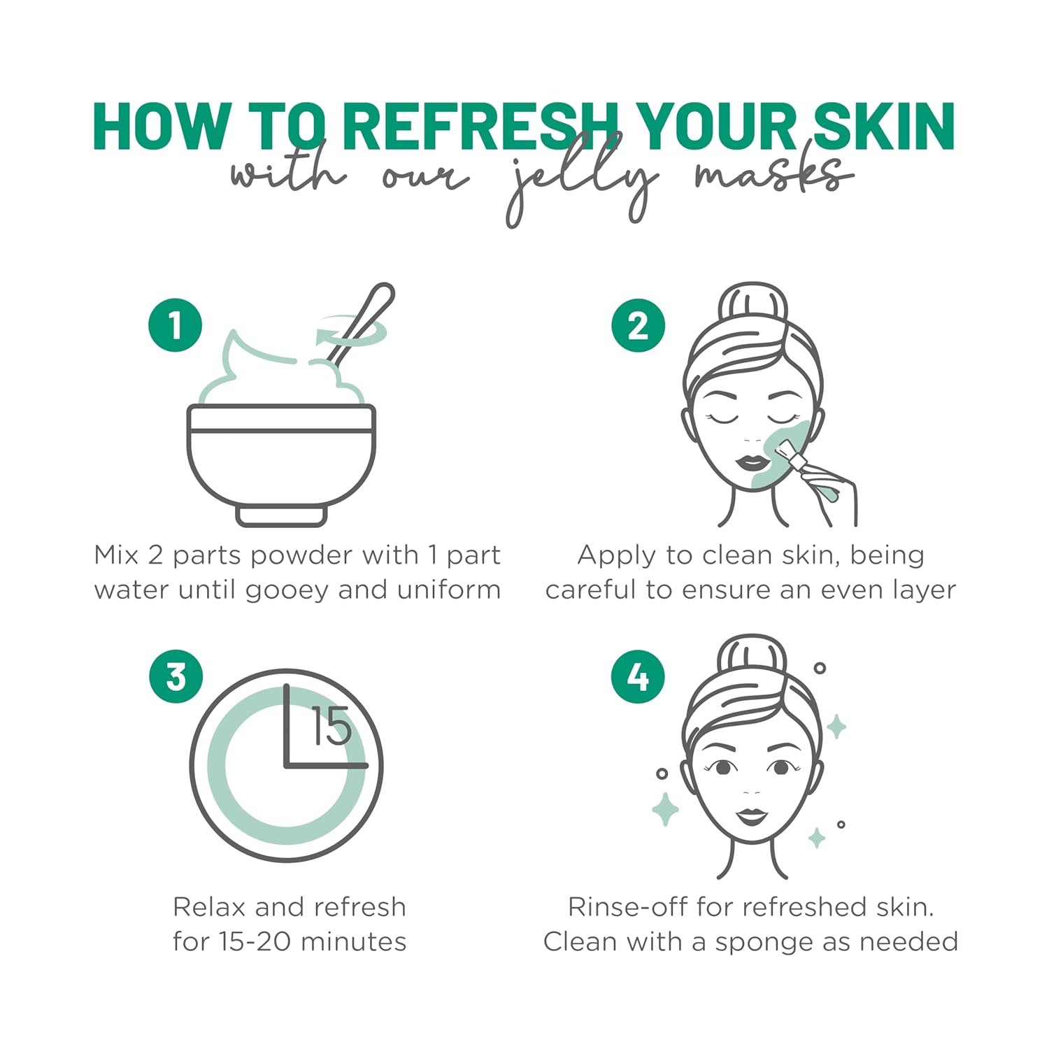 - 33% EXTRA POWDER: Our Jelly mask jar comes with 33% extra powder. This Skin care face mask is provided in the form of Powder packet which takes its form of Jelly mask upon addition of purified water.