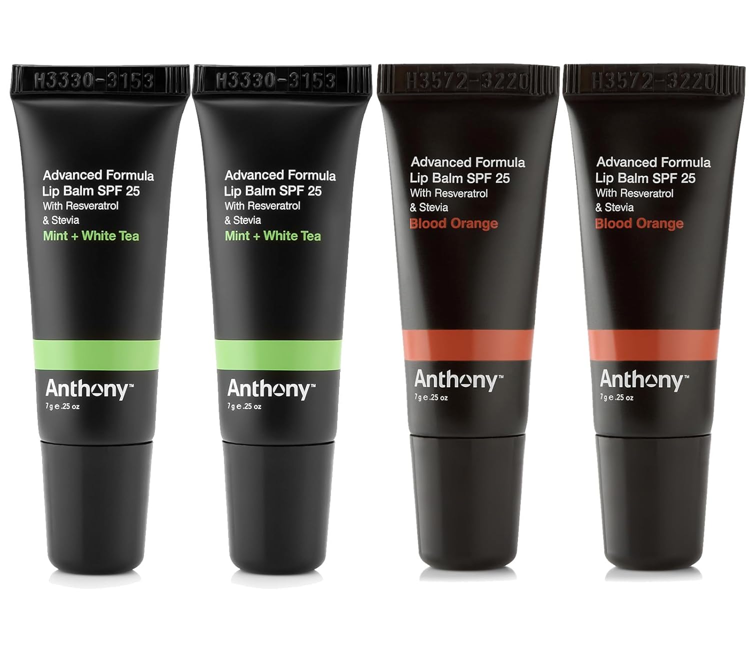 Anthony 25 SPF Lip Balm with Sunscreen for Lips – Contains Green Tea Extract, Shea Butter & Vitamin E – Moisturizing Repair Care Treatment for Chapped & Dry Lips 4-Pack