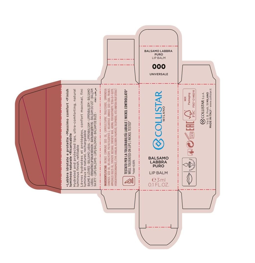 Collistar Balsamo Labbra Puro Lip Balm, 0.1 Fl Oz Made in Italy èitalian import]
