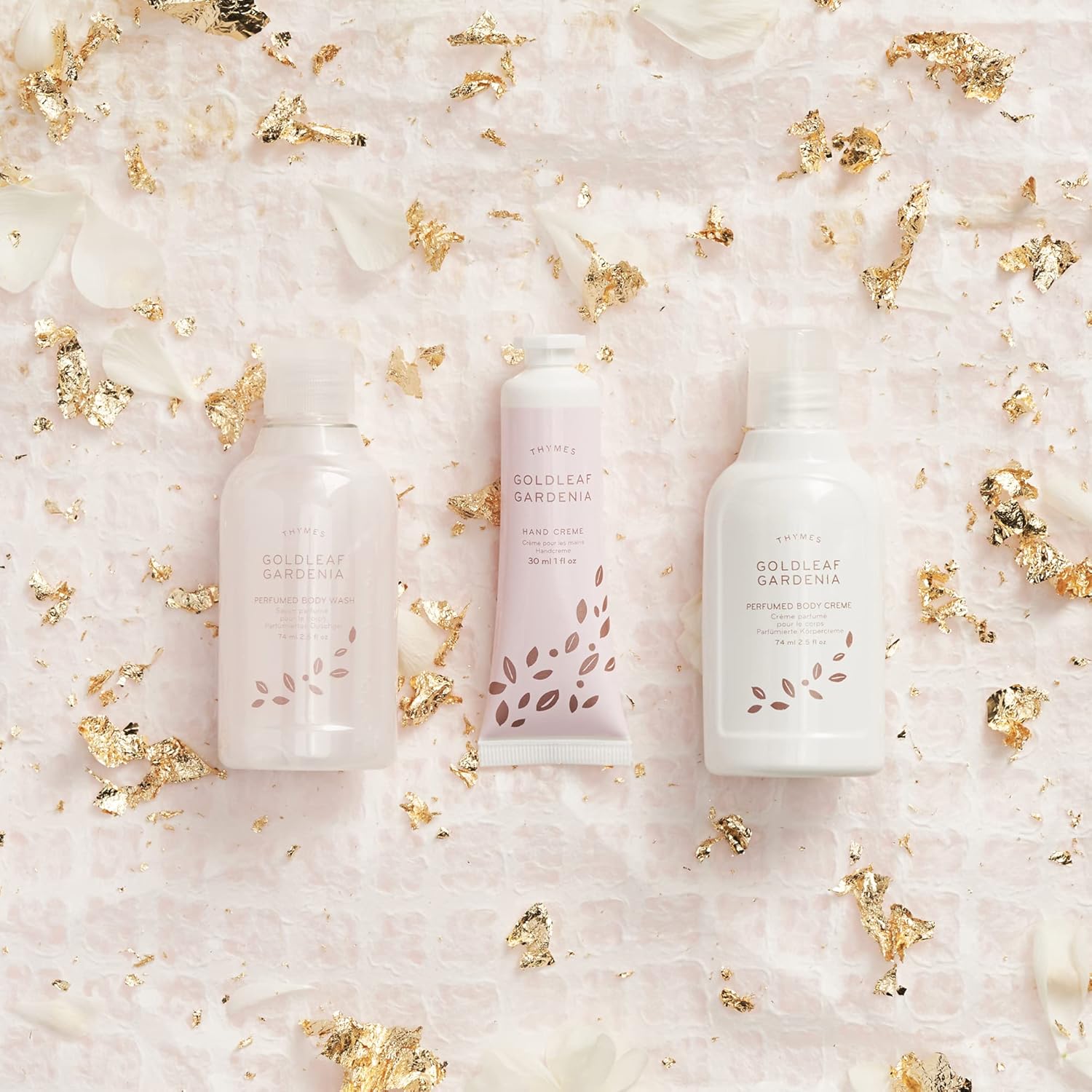 Thymes Perfumed Travel Set and Beauty Bag - Contains Body Wash, Body Lotion & Hand Cream - Goldleaf Gardenia