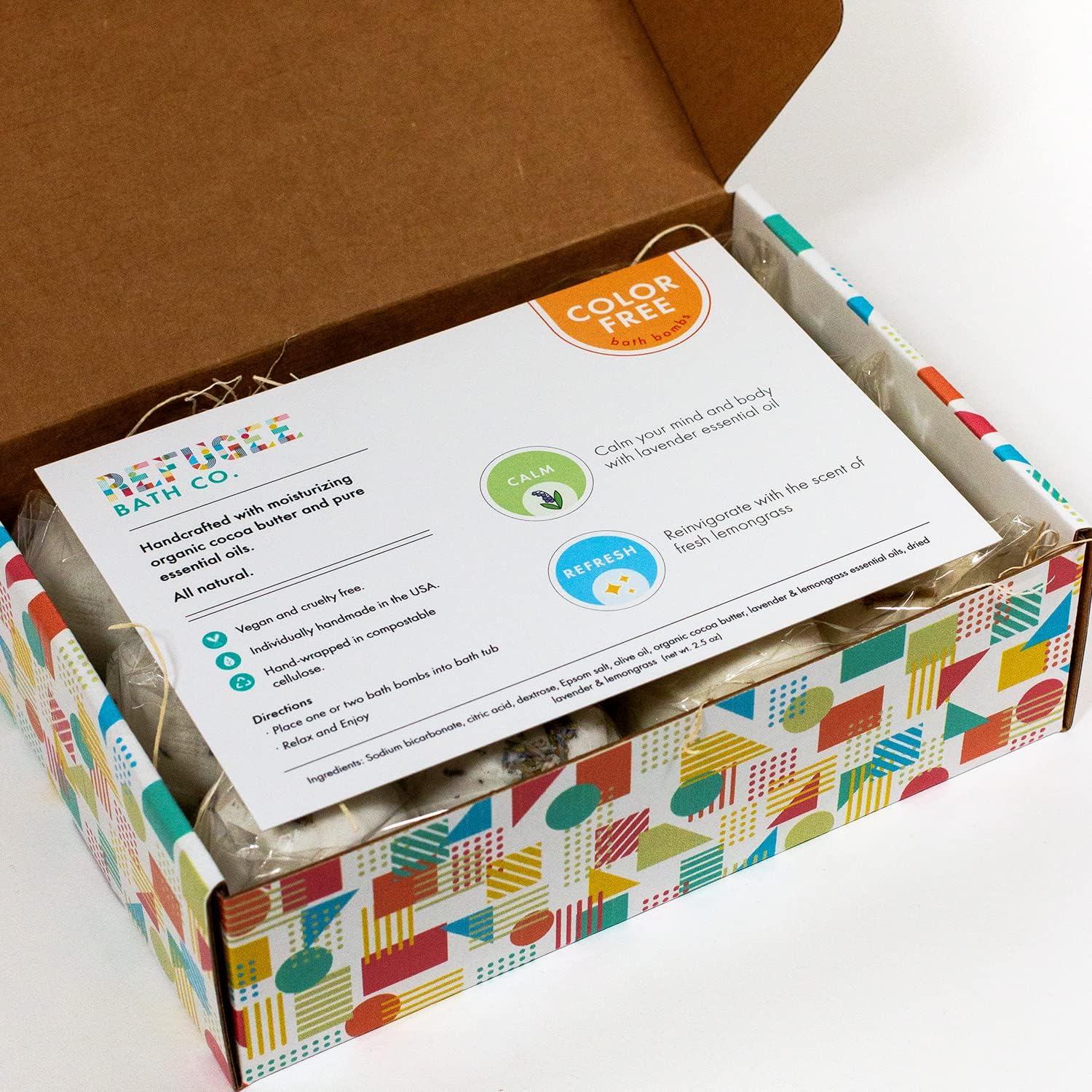 - REFUGEE MADE: Every box contains a "thank you card" explaining more about the individual who made your bath bombs. Each bath bomb is proudly hand-made in Washington State by refugees in our community. Our primary mission is to celebrate and welcome refugees in our community by providing employment.