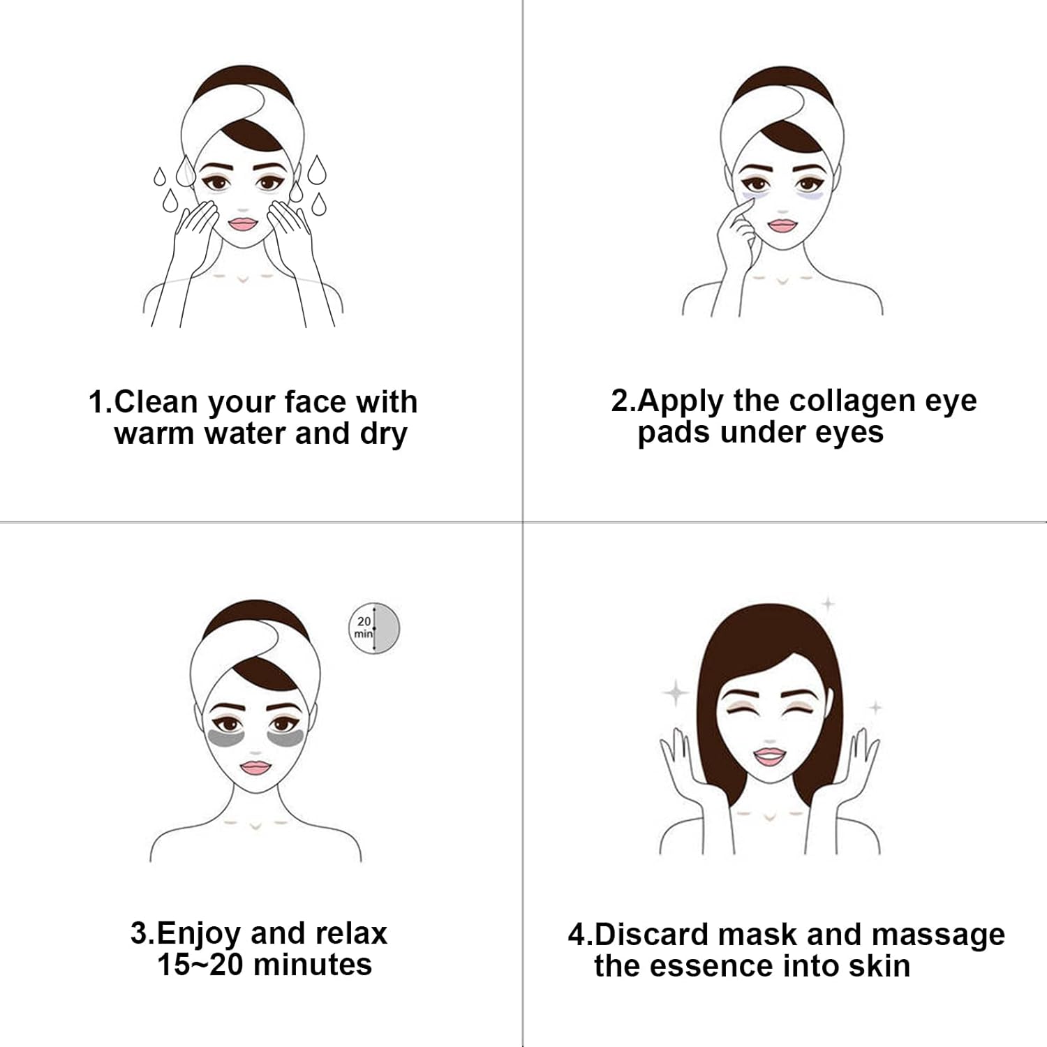 - Easy to Use - Clean your face, take out the eye mask and get close to under your eyes, discard after about 15-20 minutes. Gently massage the skin around the eyes to absorb essence to your skin