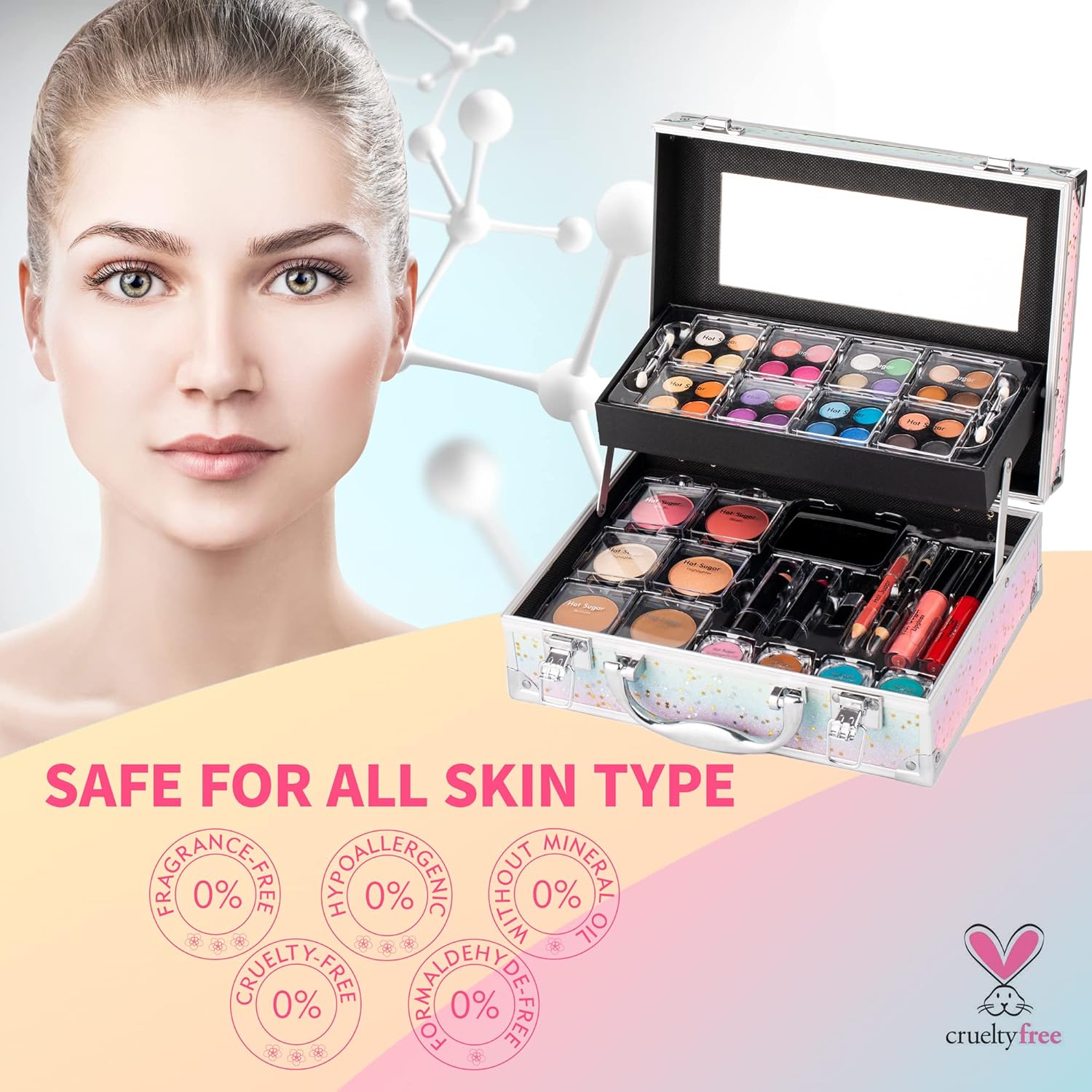 - FRIENDLY TO SKIN: The cosmetics in the teen makeup kit gift set are hypoallergenic-free, paraben-free and mineral oil free, formaldehyde-free and fragrance-free, so it is safe to apply on your face, lips and eyes without stimulating your skin. With any problems, please do not hesitate to contact our customer service.