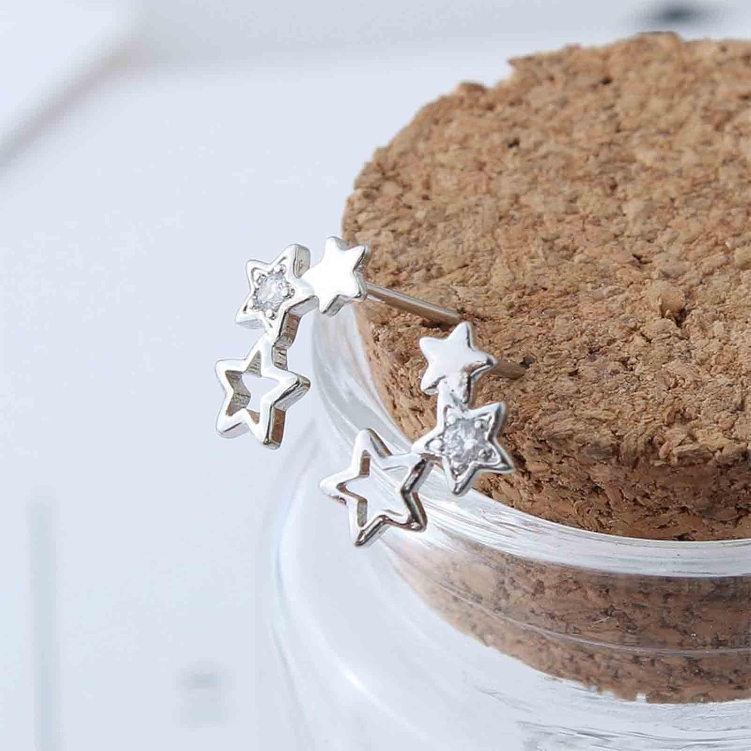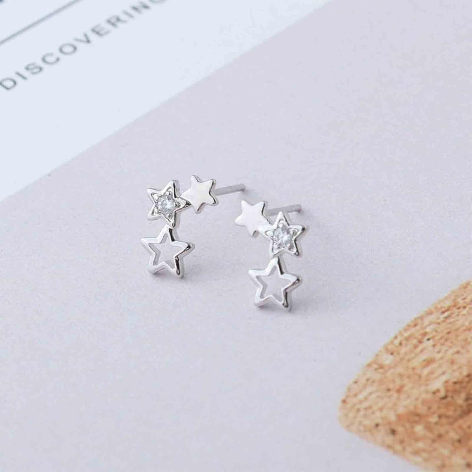 - Three CZ Star Stud Earrings suit for daily wear or party wedding prom nightclub or any special occasions.