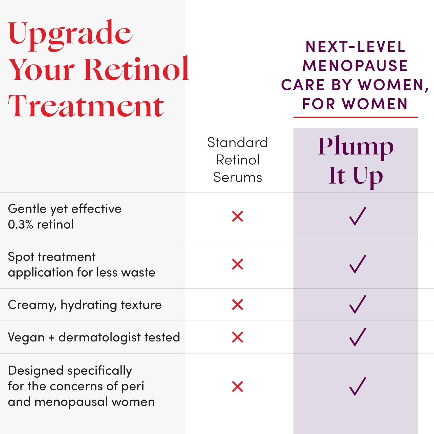 - GENTLE, EFFECTIVE RETINOL FORMULA : Our face serum for women has the perfect balance of power and gentleness with a 0.3% dose of retinol to smooth skin texture, improve tone, and minimize fine lines. It is designed for sensitive or thinning skin and this anti aging serum helps boost radiance without irritation, dryness, or redness.