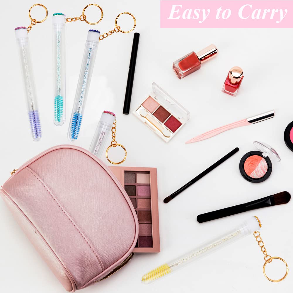 - Package Includes:You will get 24 pcs Disposable Lash Spoolies Brush and 24 Pieces Reusable Diamond keychain Eyelash Brush Tubes enough quantity for your daily use or replacement