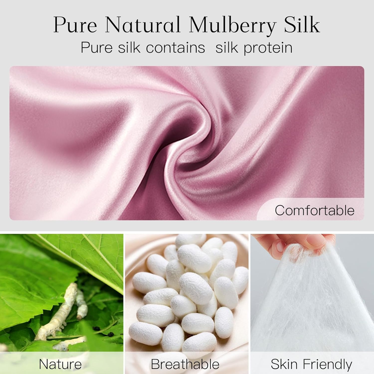 - EKO-TEX Certified Silk: The 6A highest grade mulberry silk has been certified by EKO-TEX, which was adopted as the eye covers for sleeping double sided, and we believe you will be enjoying the experience of sleeping with pure mulberry silk, as it will undoubtedly bring your eyes with a new comfort