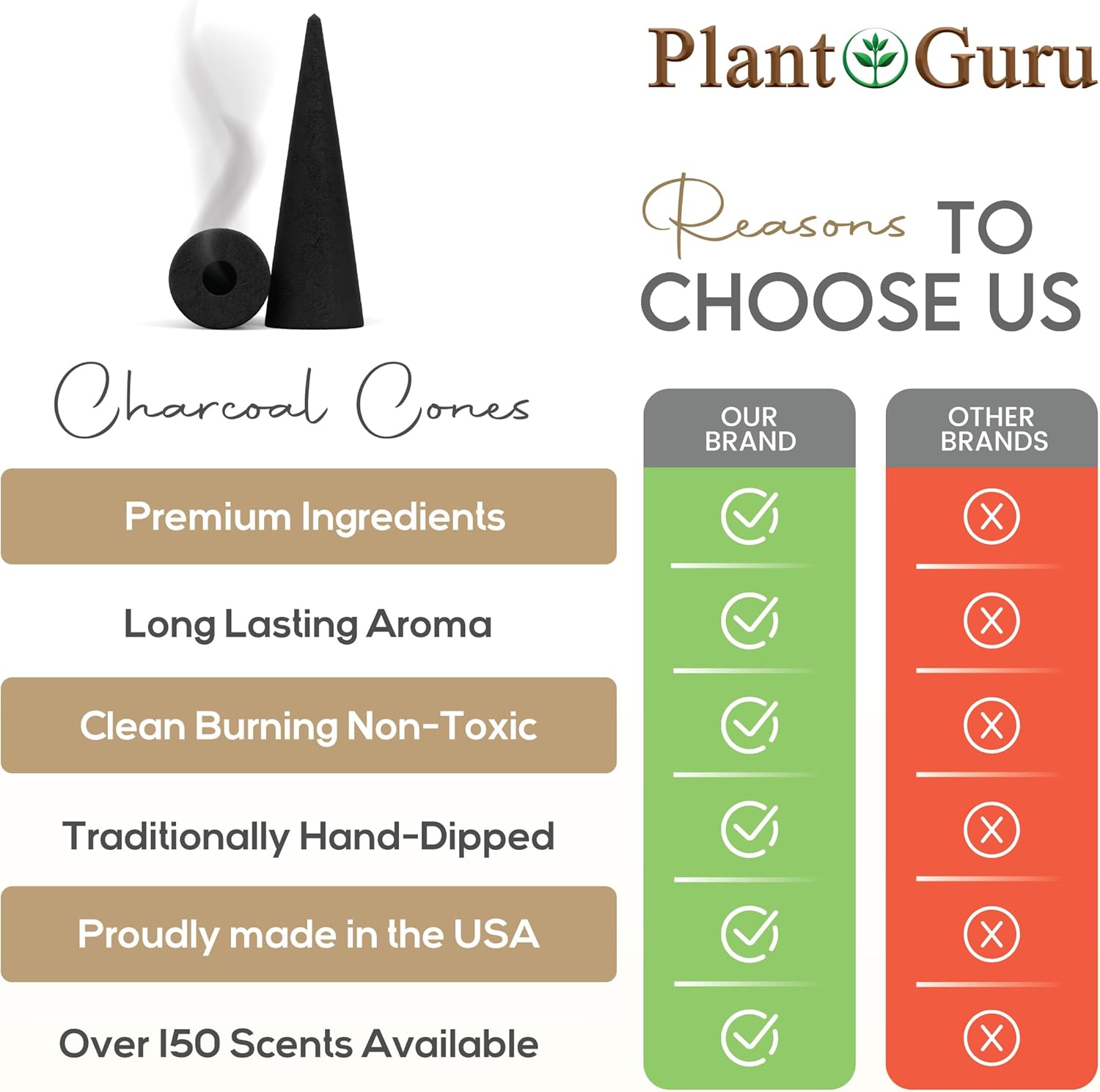 - β MADE IN THE USA - 60 Cones Per Pack - Hand dipped daily using premium grade fragrance Oils. Each cone is 2'' inches long and made of high-quality charcoal. Hand dipped for 48 hours. Burns time is approximately 25 to 30 minutes.