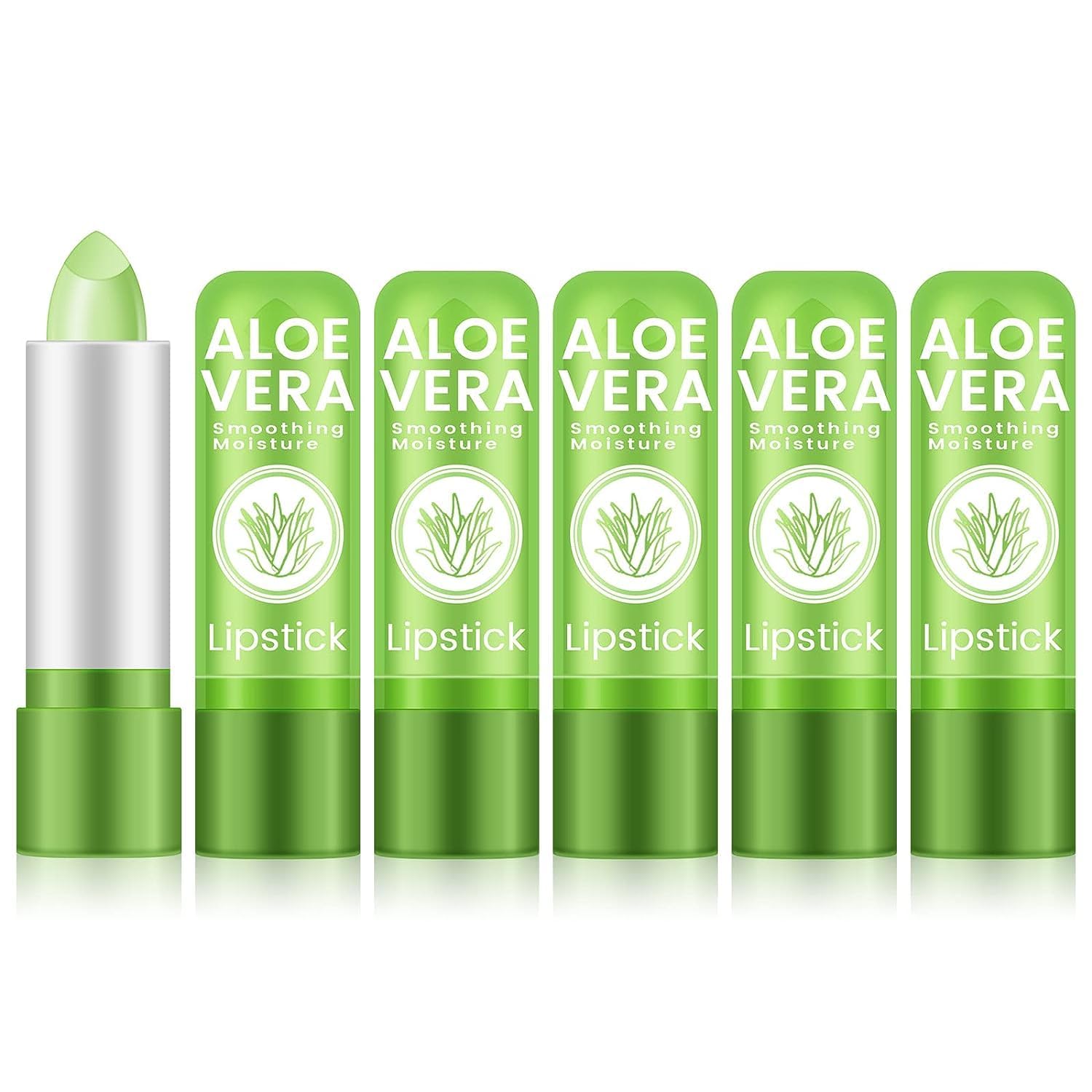 Ownest 5 Pcs Aloe Vera Lip Balm, PH Color Changing Lipstick, Change from Green to Natural Pink, Deep Hydrating Tinted Lip Balm, Daily Lip Moisturizer for Dry Cracked Lips, with Real Aloe Vera